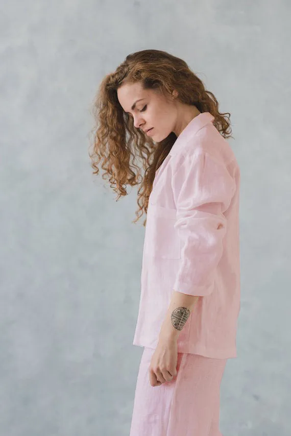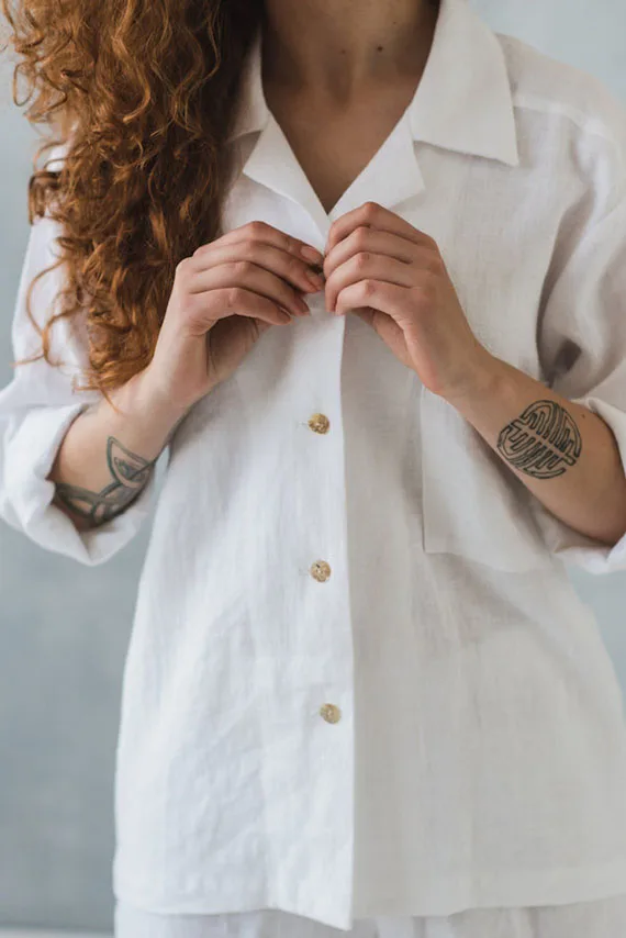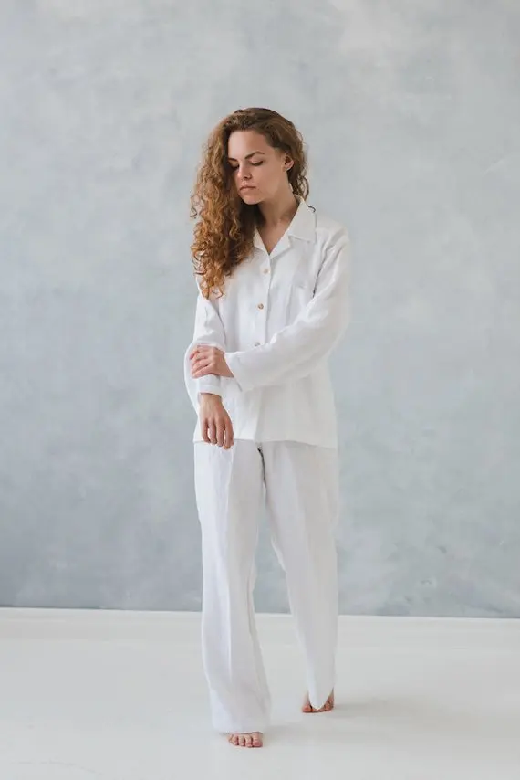 100% Linen Classic Pajamas Pjs Pyjamas