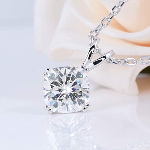 We aim to create exceptional value and fantastic jewelry pieces for our customers. Pendant is made with 2ct(7.5mm) GH near colorless cushion cut moissanite.Pendant is genuine 14K white gold.And it comes together with a "18" length sterling silver chain.