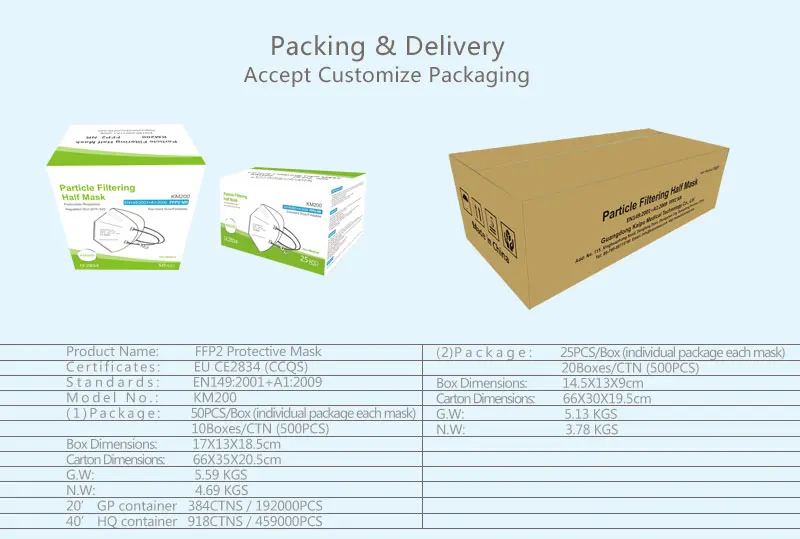 A: In general, we pack 1pc mask in 1 OPP, 50pcs masks in one color box and 500pcs masks in one master carton. Of course, you could customize the packaging.