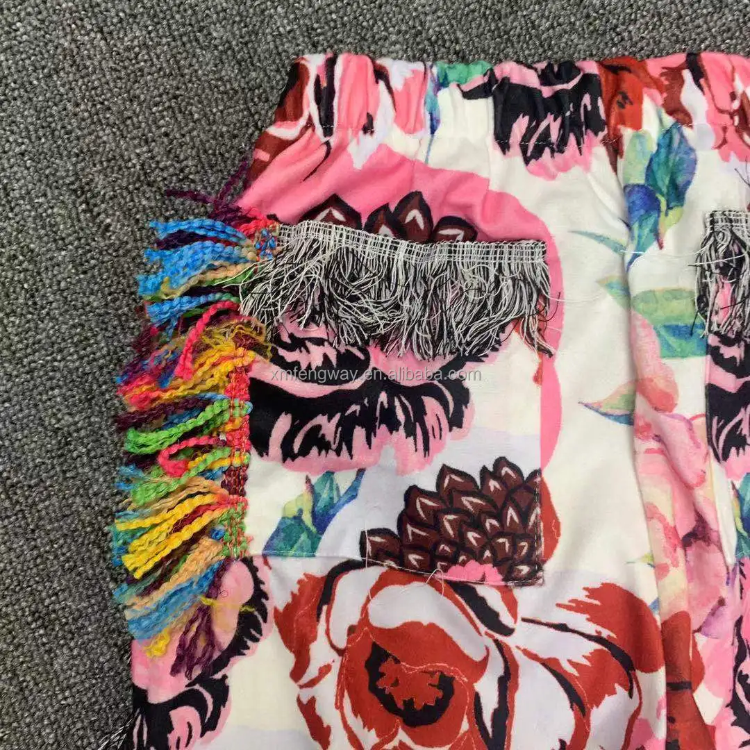 2021 New Summer Fashion Clothing Print Pants Casual Fringed Velvet Stacked Tassel Jogger Casual Pants Women