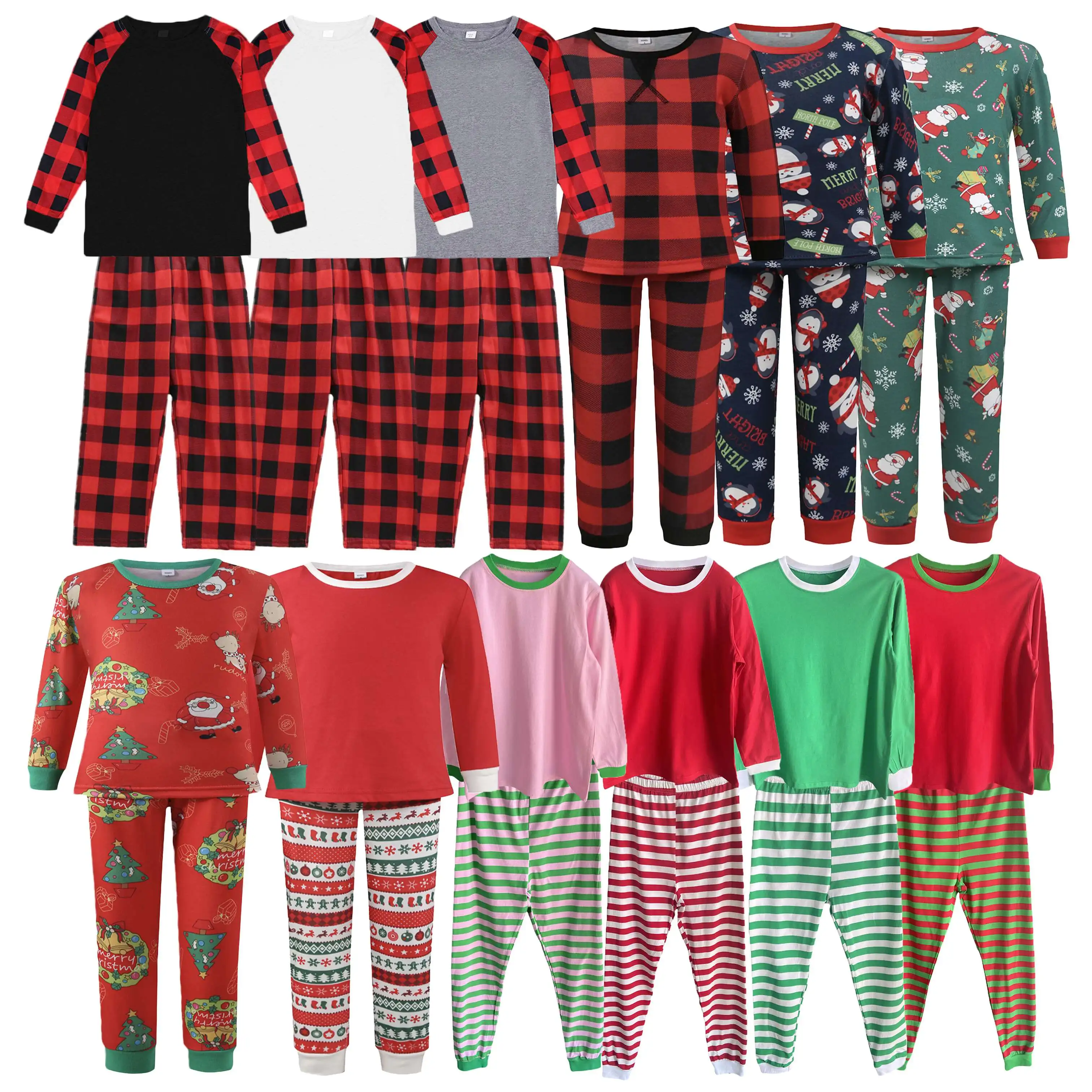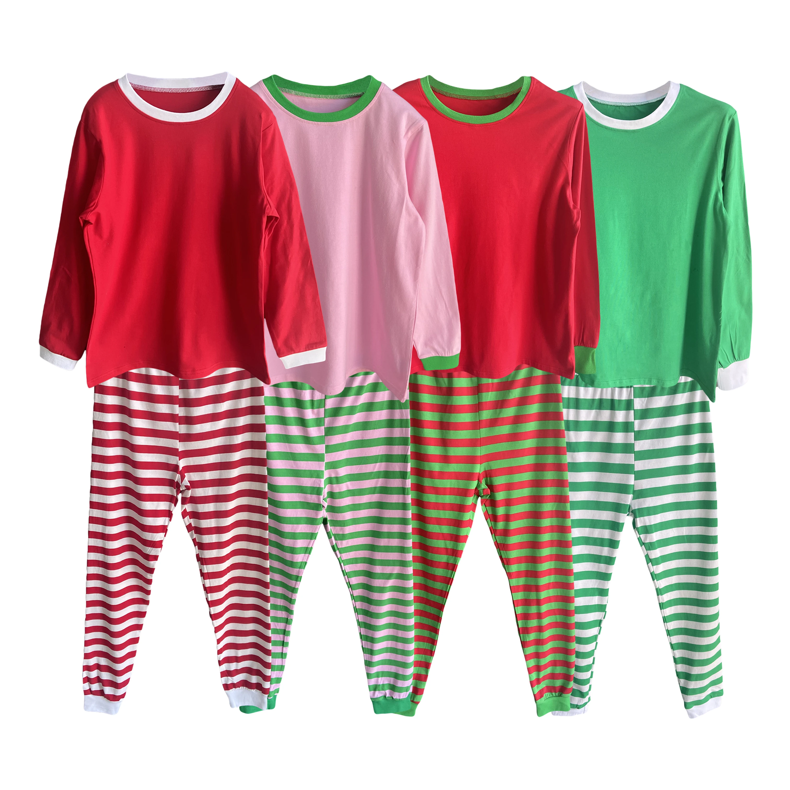 2022 Christmas Pajamas Red White Strip Christmas Pjs Set Green White Christmas Pajamas Sets Xmas Pjs