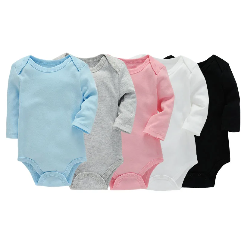 2022 O/a Service High Quality Wholesale 100% Cotton Soft Baby Bodysuit Plain Color Baby Romper Long Sleeve Unisex Baby Clothing
