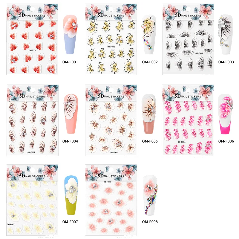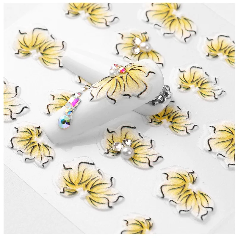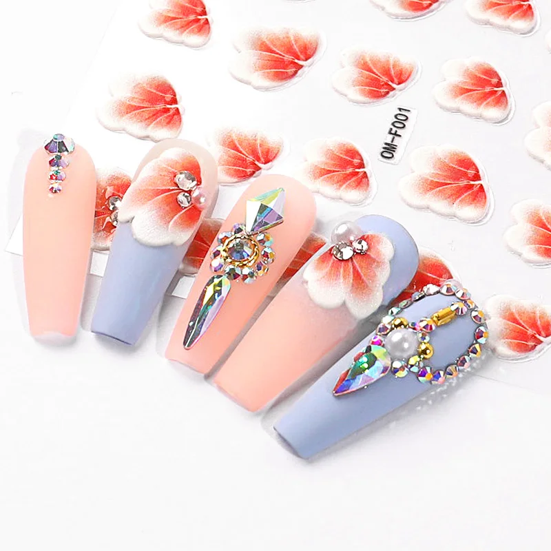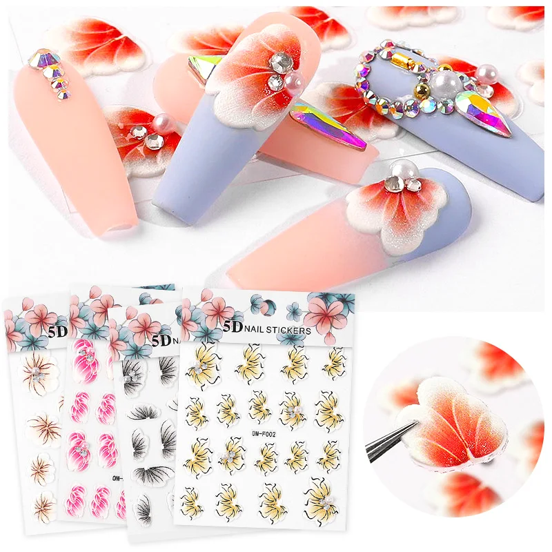 5d acrylic nail stickers 5D Flower nail Stickers for Nails Decorations