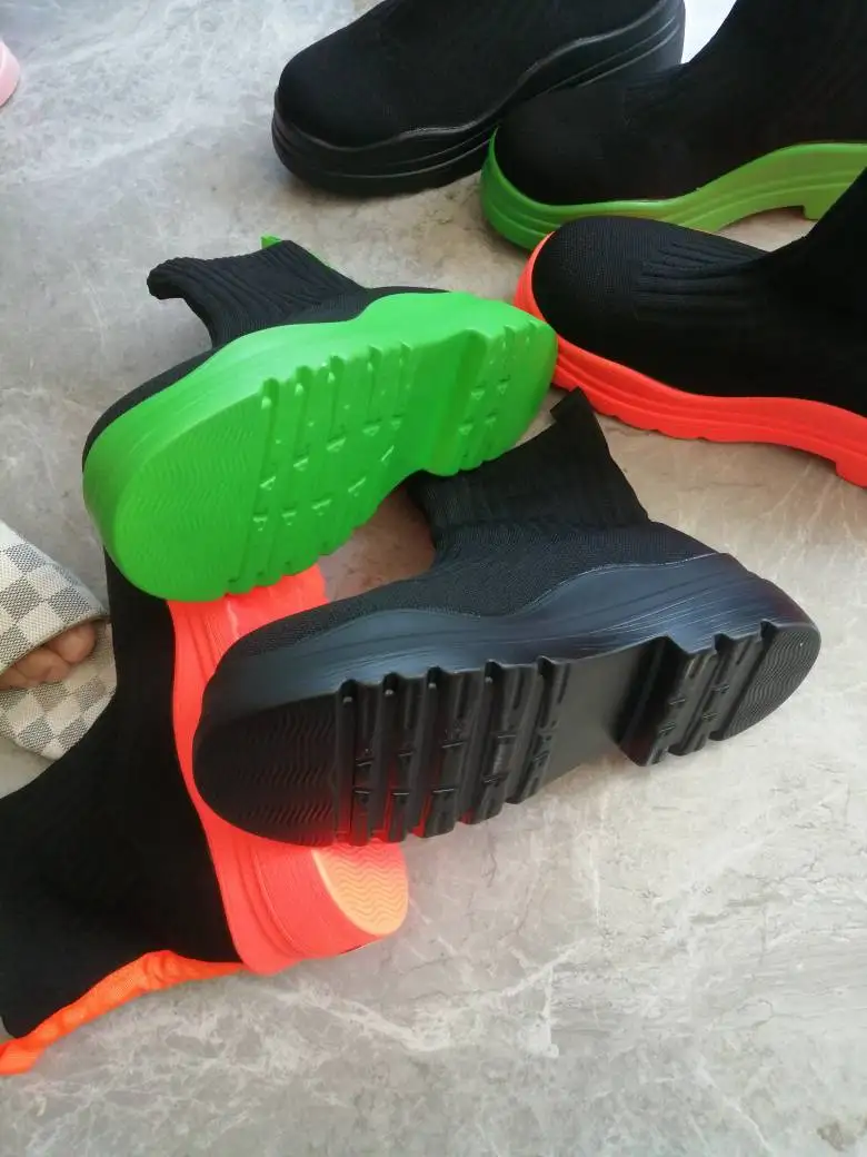 2022 Winter Boot Socks Women Shoes Fashion Sneaker Thick-soled Knitted Flats Boots Platform Boots