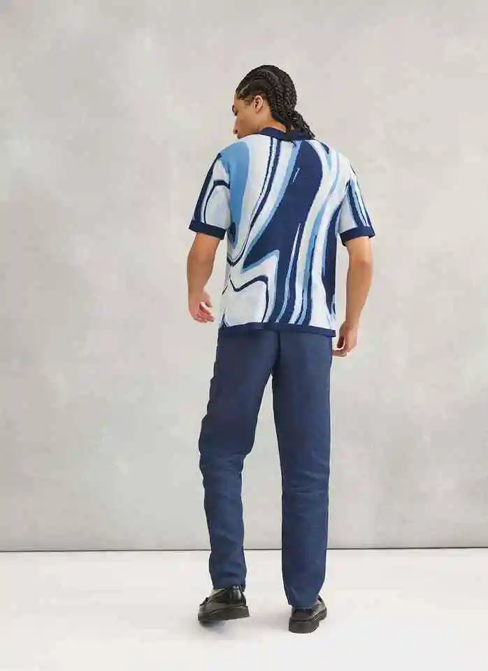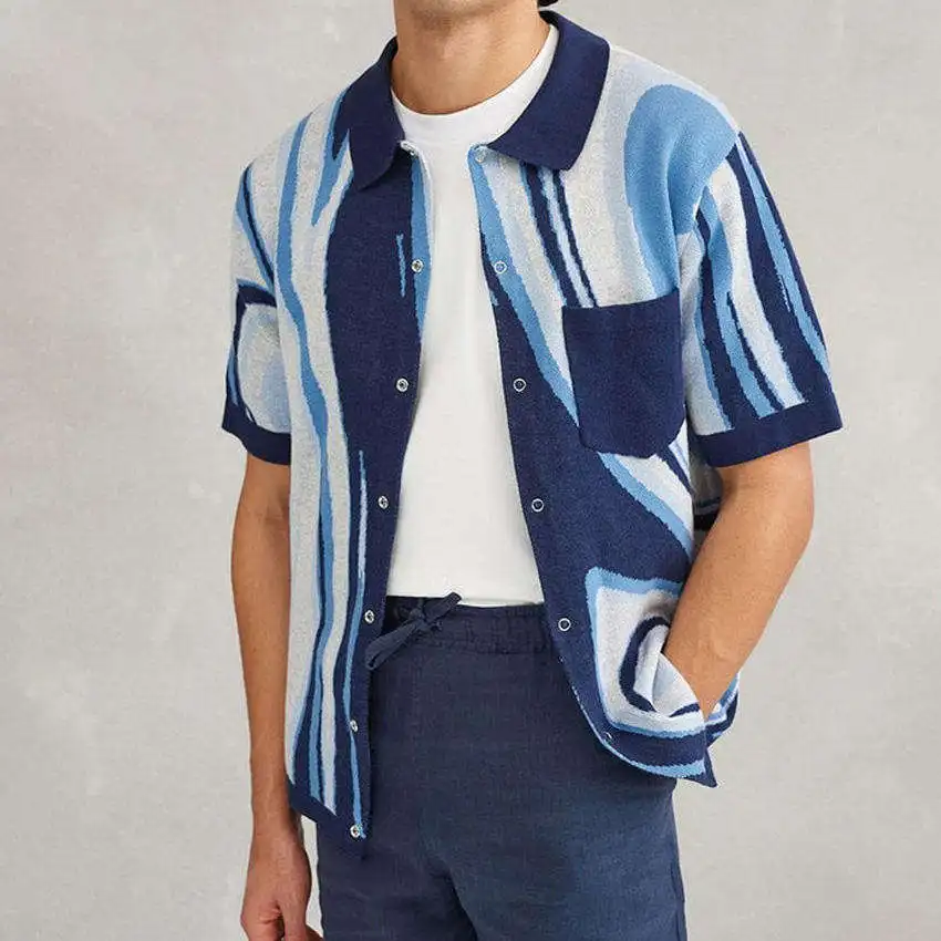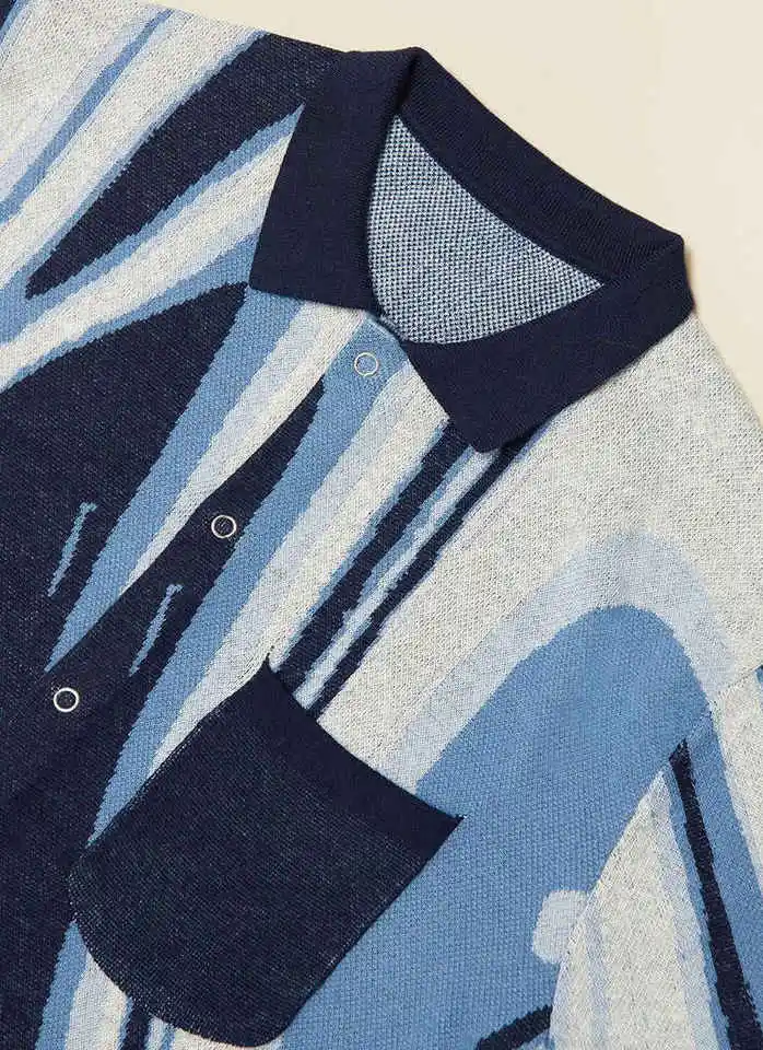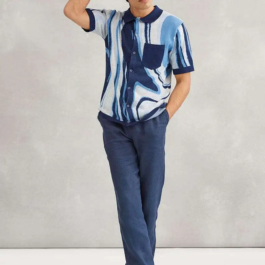 2023 Men Sweater Custom Front Pocket Polo Knit Shirt Marble Jacquard Knitted Knitwear Men Pullover Sweater
