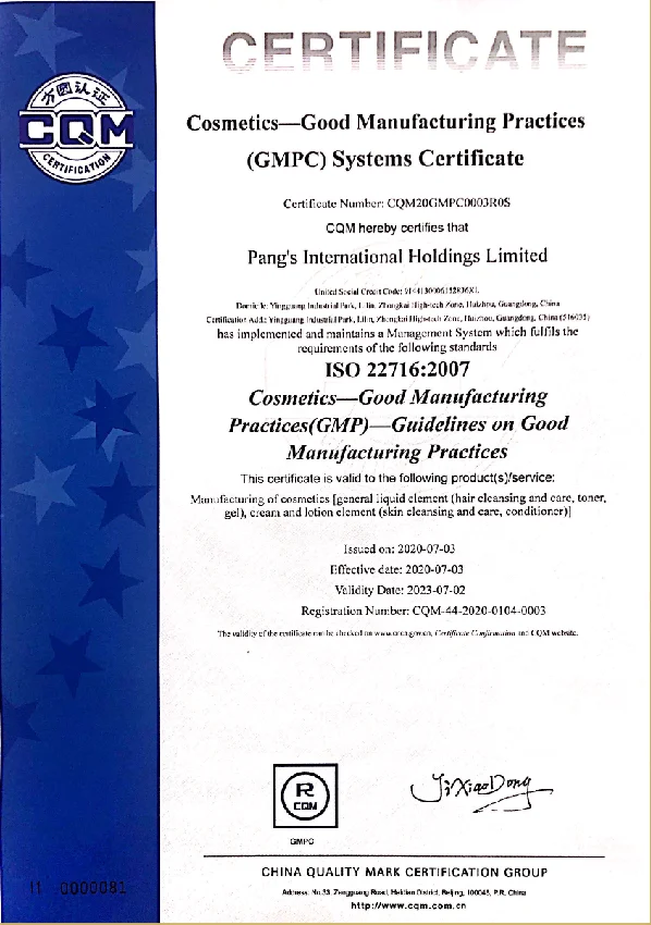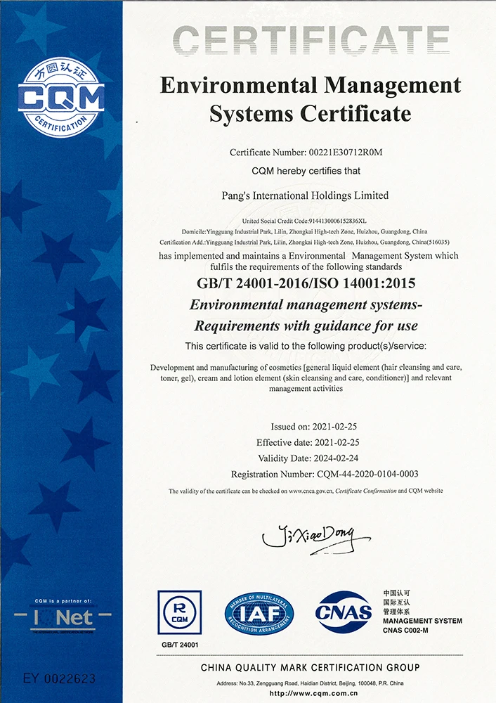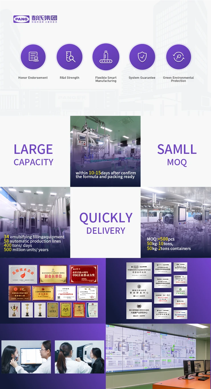 Our company has passed the ISO22716\ISO9001\ISO45001\ISO14001 qualification certificate, and it is also a national high-tech enterprise of advanced scientific research, high-quality and high-efficiency. We are committed to creating a one-stop output platform for all kinds of beauty makeup.We specialize in many fields, such as washing, skin care, sunscreen, makeup base, intimate care, skin & object surface disinfection, household cleaning and so on. We devote to create OEM/OBM/ODM one-stop supply chain platform for our customers.Innovation and scientific research endow 'CENTURY PANG's 'with core competence.