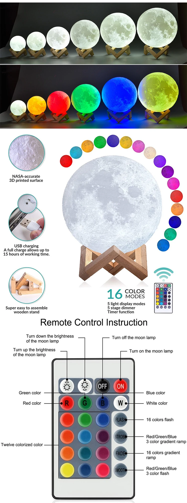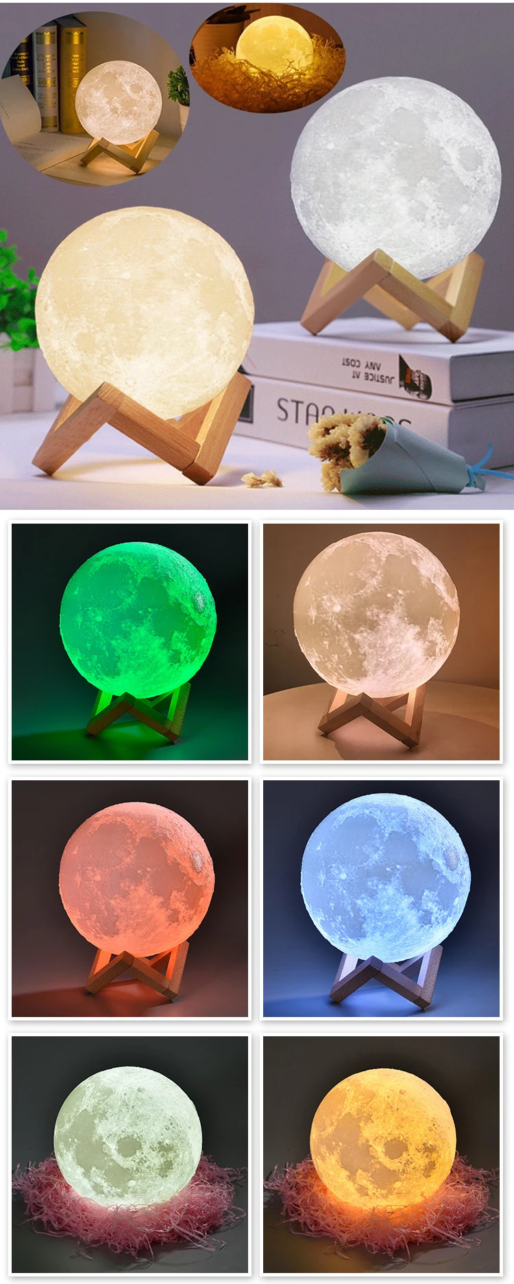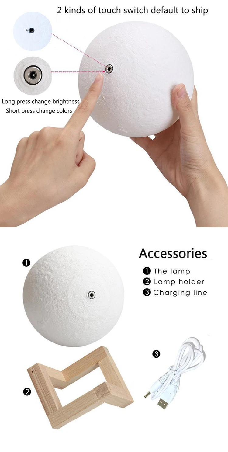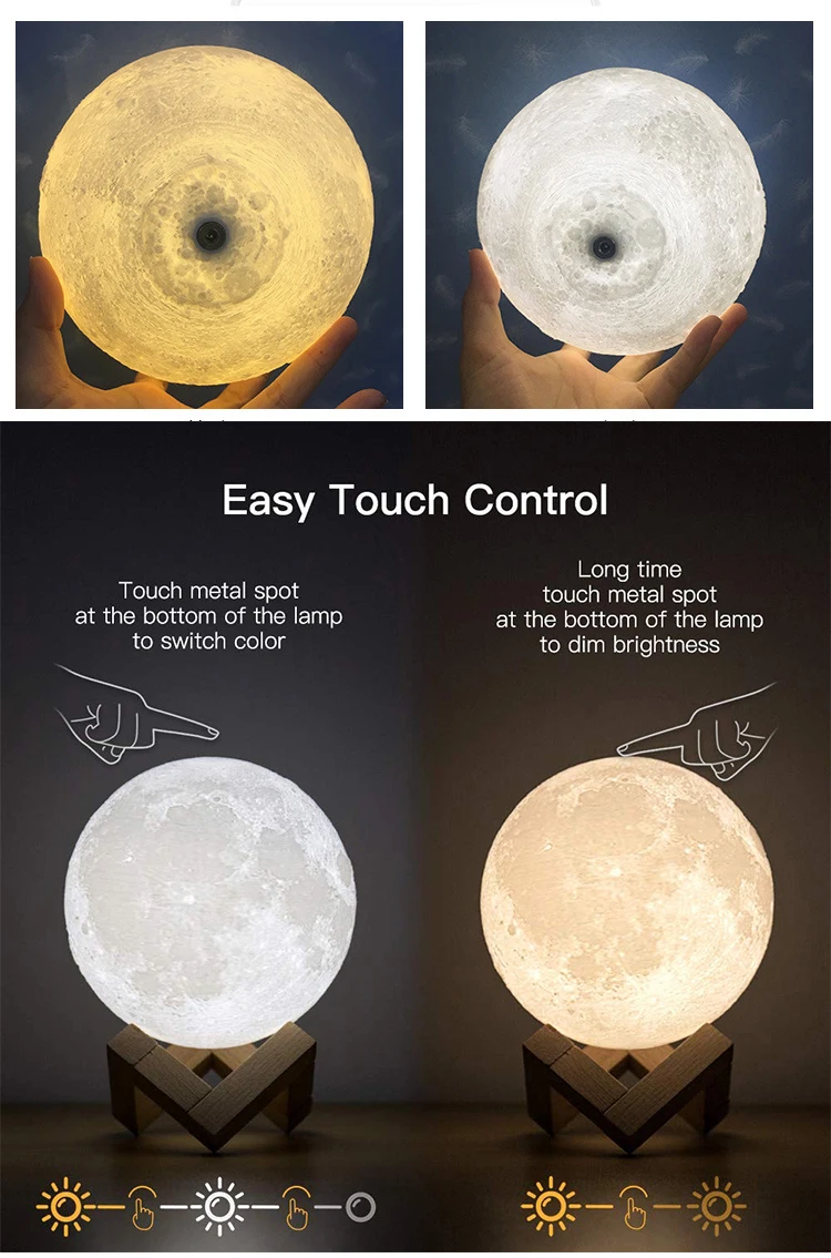 3d Moon Lamp 16 Colors Touch Night Light With Remote Control And Usb Rechargeable Led Night Light For Home Decoration