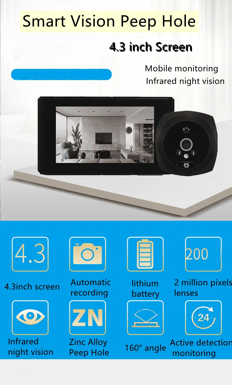 2. The 4.3-foot large screen inside the door allows you to observe the outside situation through the screen and control whether