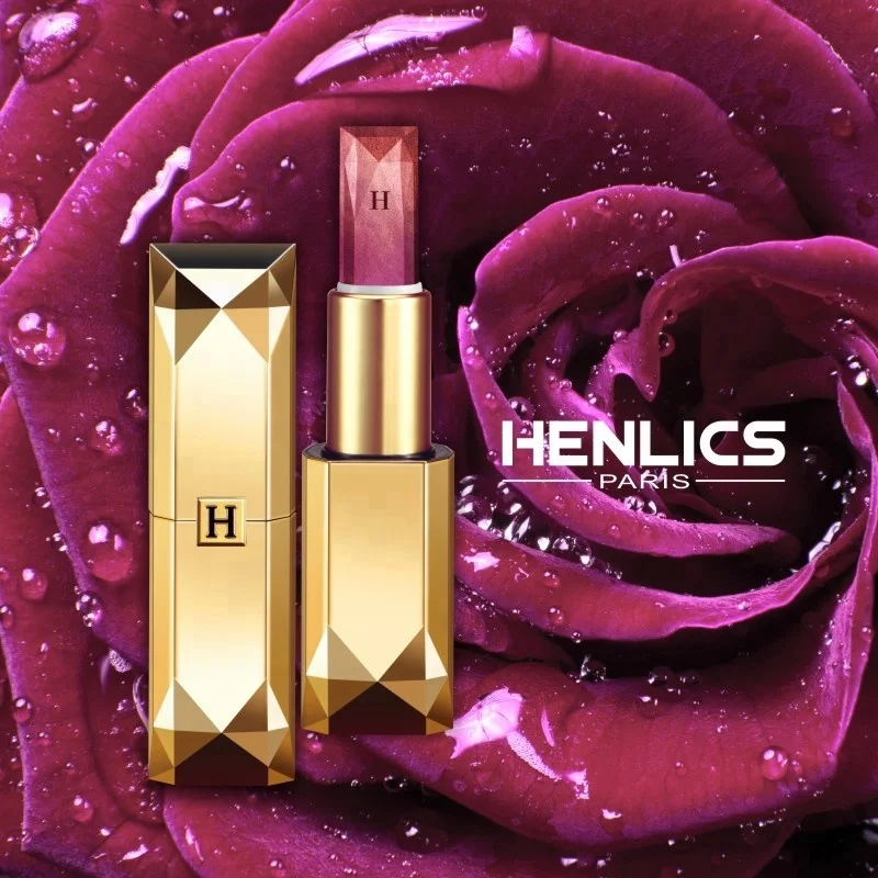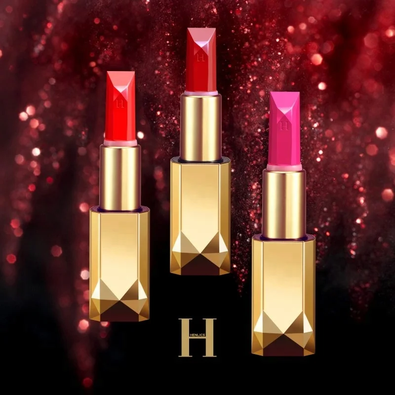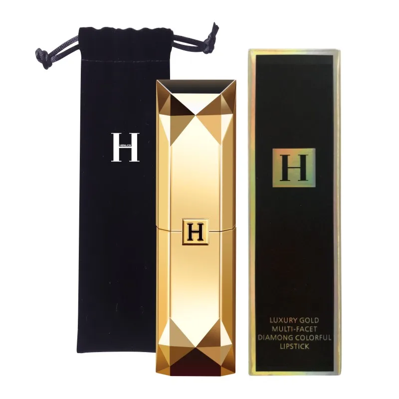 1PC HENLICS  Luxury gold multi-facet diamong colorful lipstick