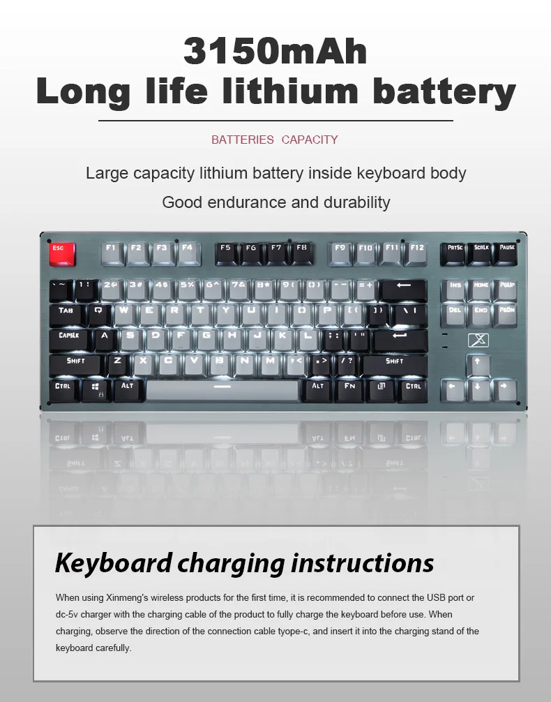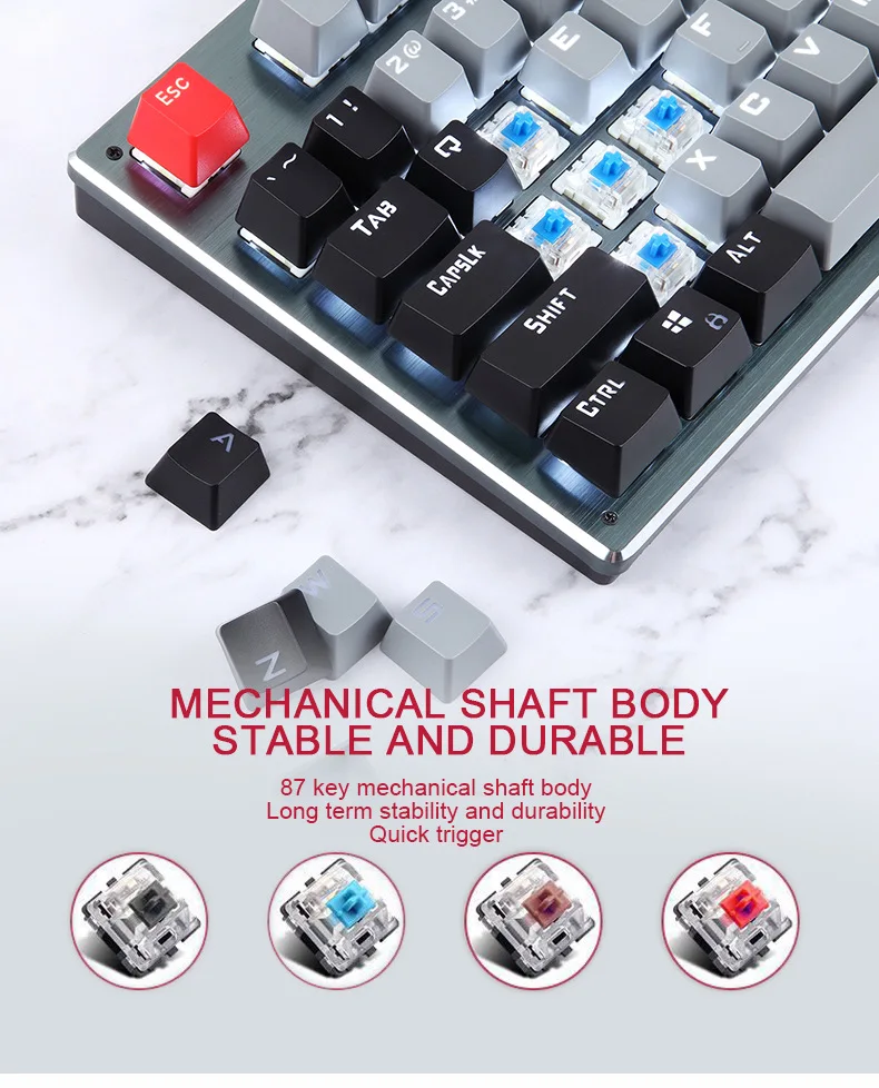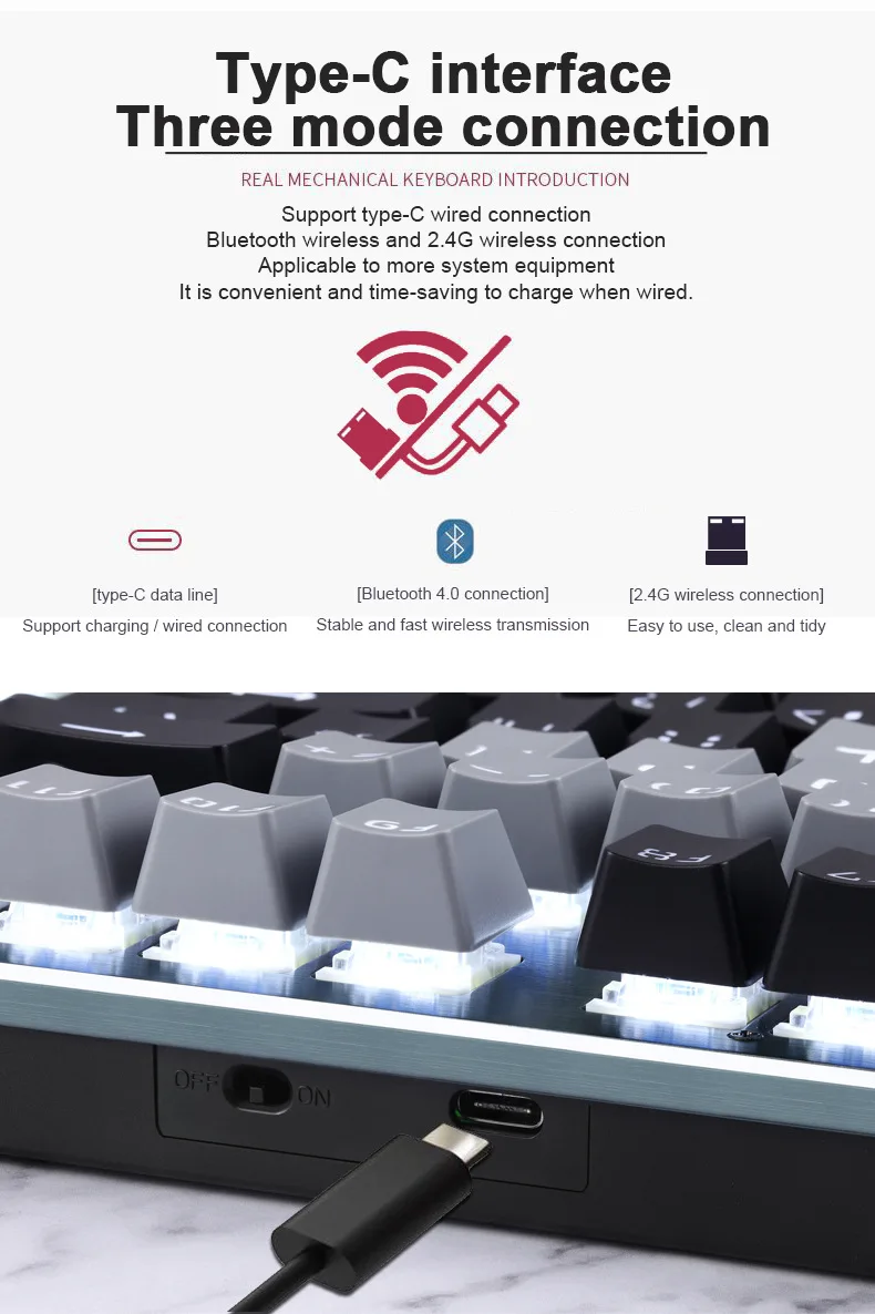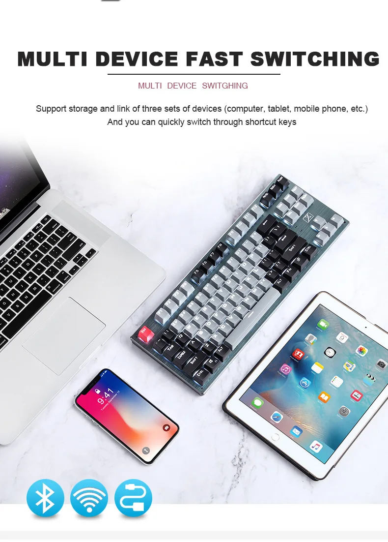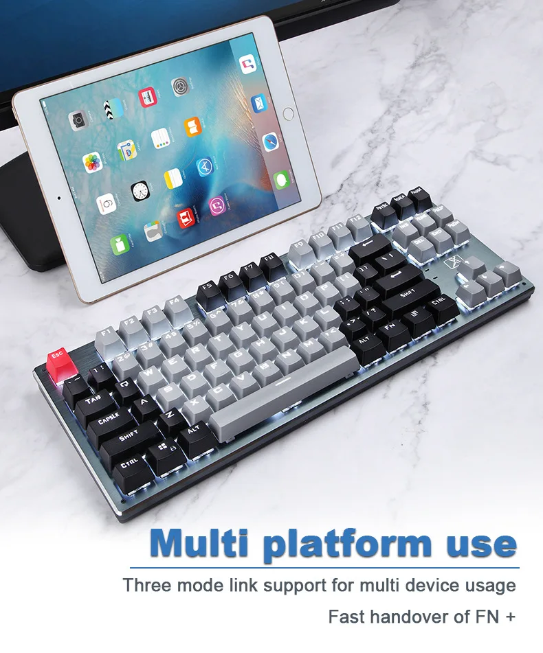 87Keys 2.4Ghz USB RBG Backlit Waterproof Aluminum Gaming Keyboard Wireless Mechanical Keyboard with BT