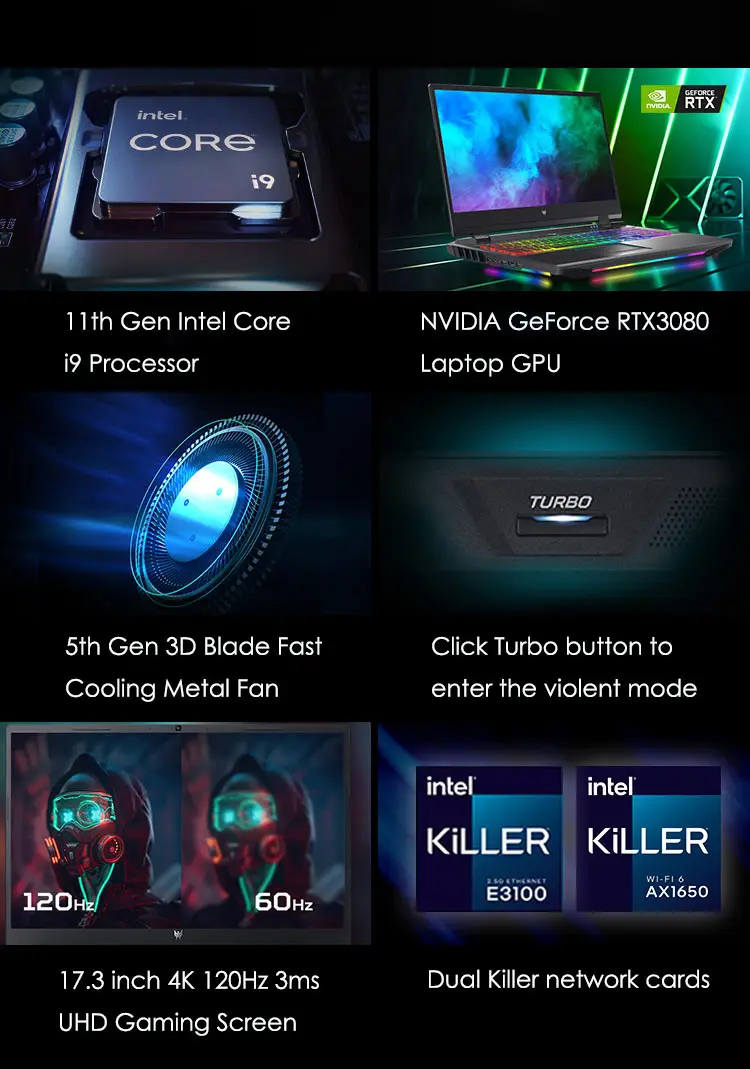 Acer Predator Helios 500 super gaming laptops 17.3 inch 4K UHD 120Hz IPS screen i9-11980HK 64G 2T RTX3080 laptop computer win10
