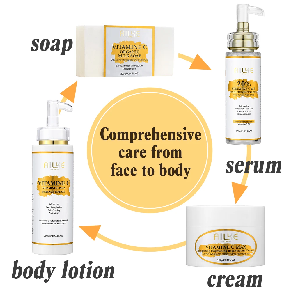 Natural Organic Vitamin C Body & Face Maximum moisturizing regeneration whitening anti-aging VC Body Lotion 300ml VC Cream 100g VC Serum 100ml VC Milk Soap 200g