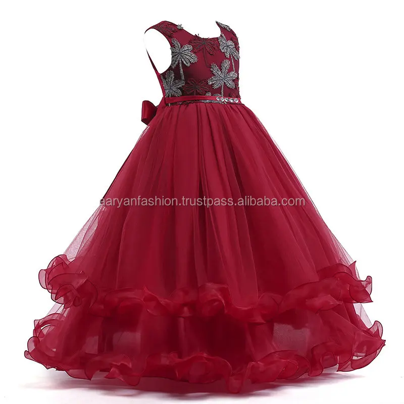 2019 High Quality Wholesale Summer Floral Embroidery Girls Kids Patchwork Fancy Princess Dress