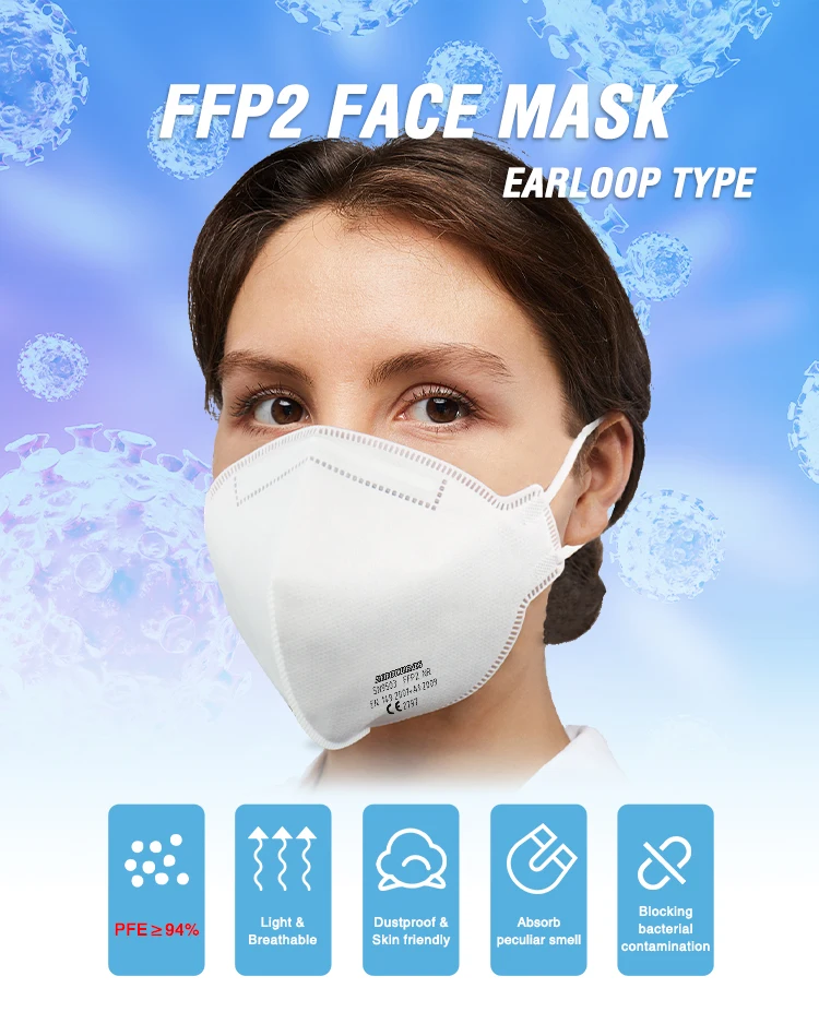 2. Position the mask under the chin covering mouth and nose. Hold the Folding Particulate Respirator in position over the nose and mouth and fasten the other end of the retaining clip to the other side of the mask3. Adjust the harness/ear loop to make it comfortable