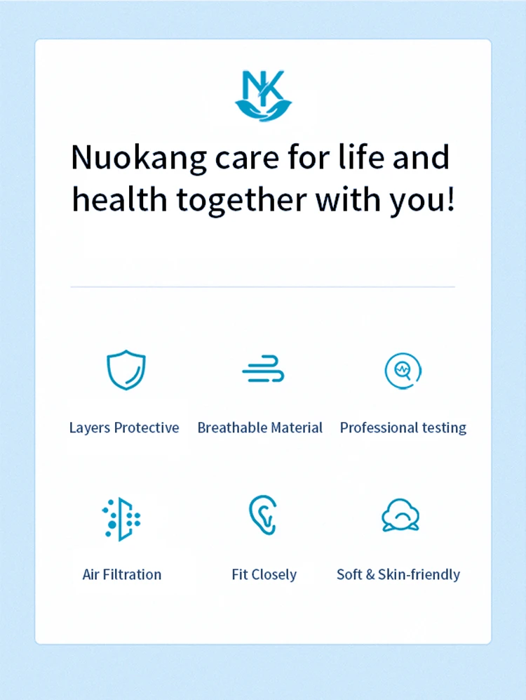 Guangdong Nuokang Medical Technology Co., Ltd. is located in Houjie Town, Dongguan City, Professional manufacture masks. After expansion in 2020, the new factory cover 20,000 square meters, employed 180 people, and equipped with 100,000-level clean workshop, ethylene oxide sterilization workshop, smart warehouse and sales center, can deliver 2,800,000 Pcs msks every day,The company has passed SGS ISO9001 and ISO13485,Is an enterprise on export whitelist of the China Ministry of Commerce.