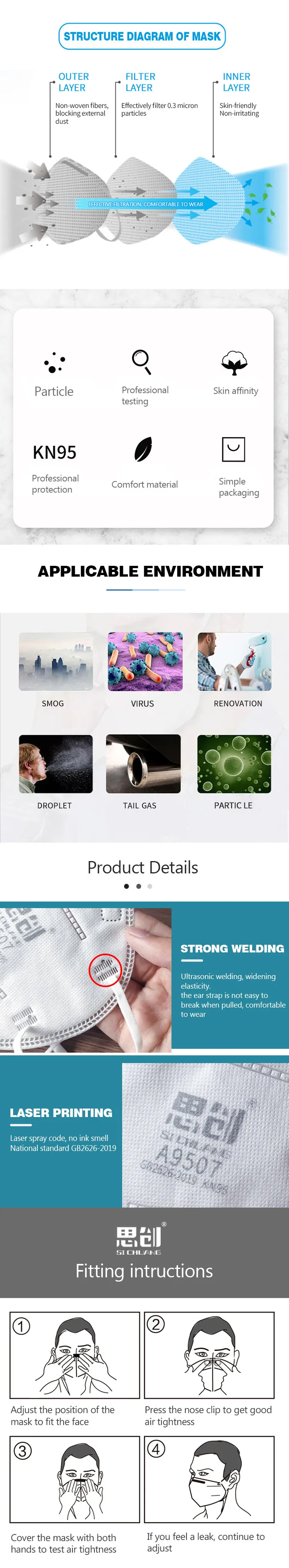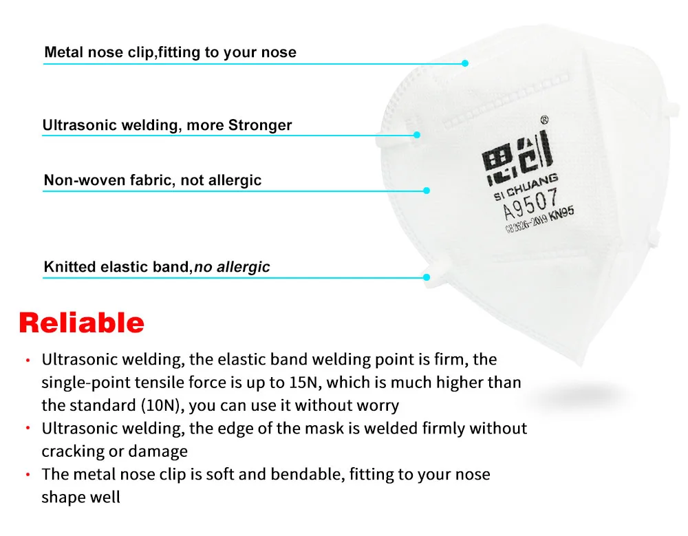 1. STRONG KN95 face mask is made of skin friendly non-woven fabric and melt-blown fabric. Melt-blown with Static electret, filtering the non-oil and oil particulates effective.