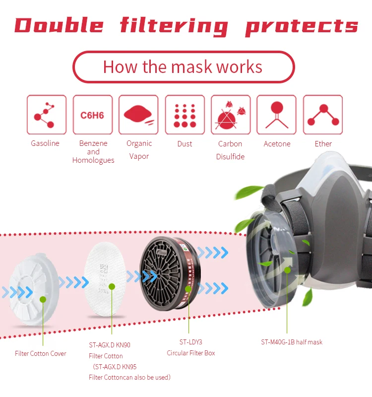 CNSTRONG reusable face forging mask half face chemical cartridge respirator construction mask with double filter