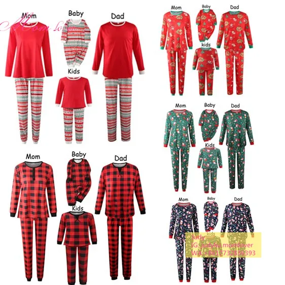 Wholesale blank red and white christmas pjs family 2021 matching christmas pajamas family