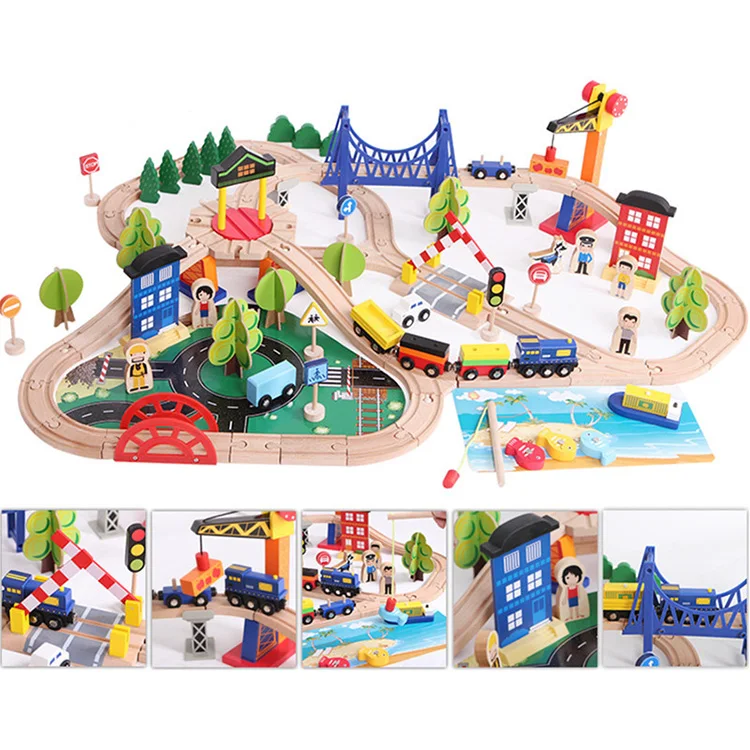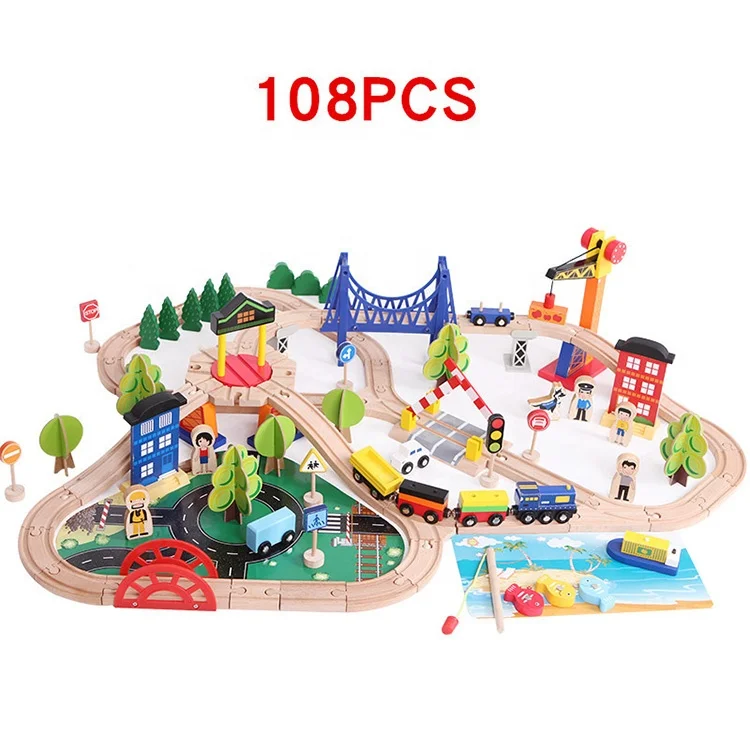 Custom Multifunctional Fishing Educational Classic Railway Toys Wooden Train Track Children Toy Train Track