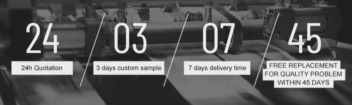 Sample time: 3-5days, production lead time is usually about 12-15 working days.
