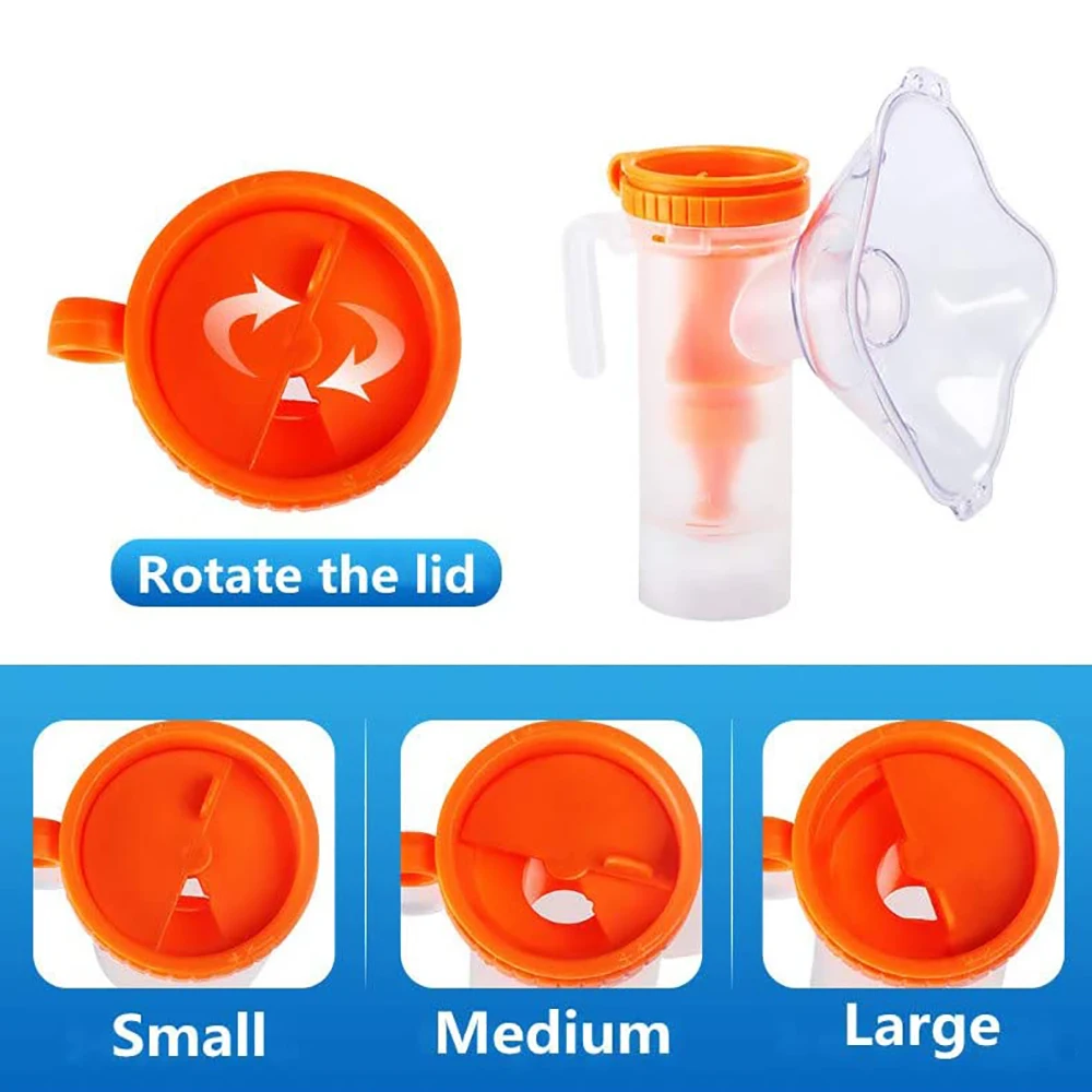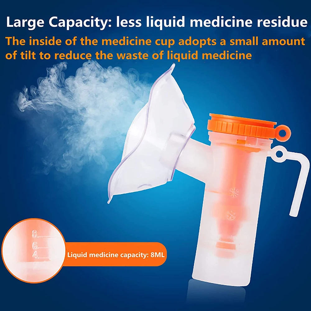 The Nebulizer Accessories Set Includes: | 1 Set*Pediatric Standard Mask 1*Nebulizer Container (8ml) 1*Mouthpiece 1*Tube |