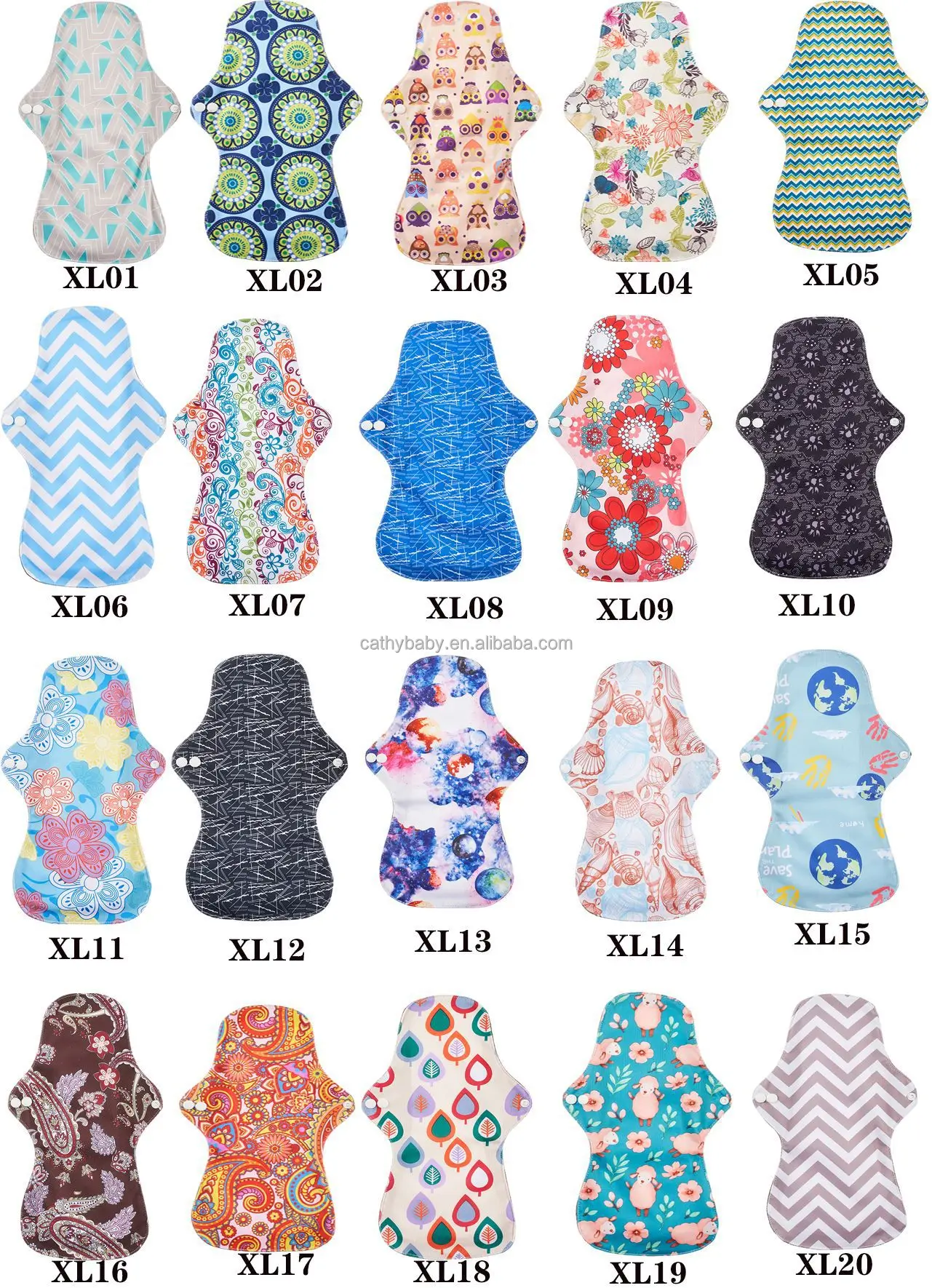 Eco Friendly 18.5*32.5 XL Size Reusable Washable Sanitary Napkins Feminine Hygiene Sanitariy Pads For Women Menstrual Cloth Pads