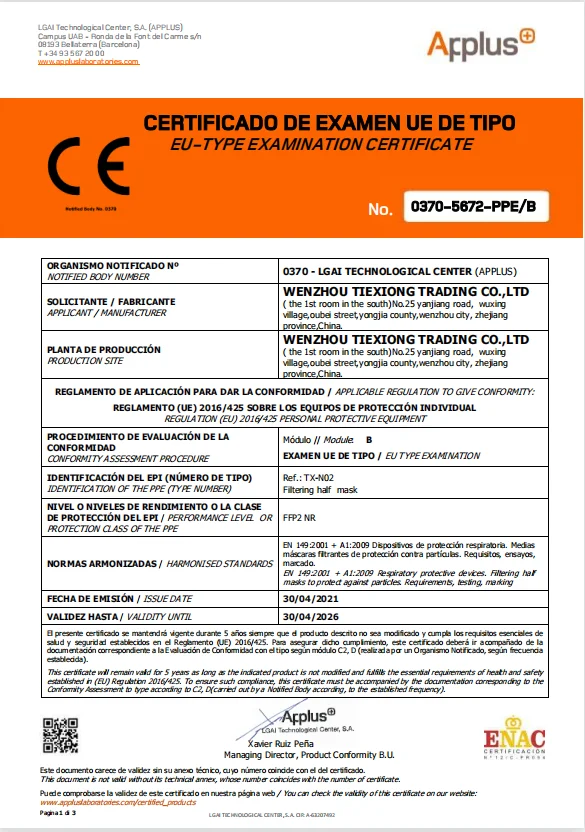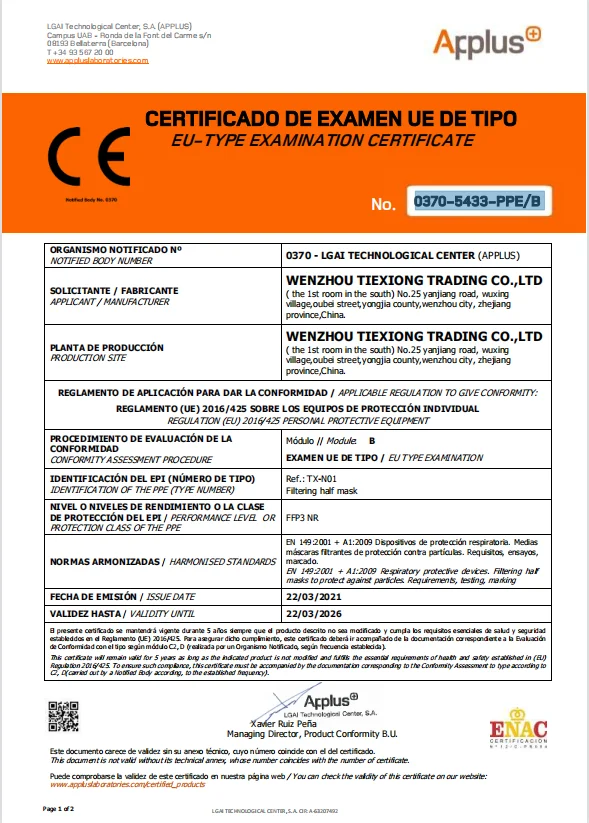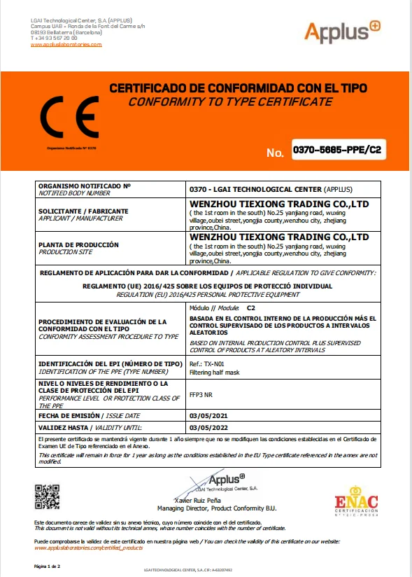 Standard | EN149:2001+A1:2009 FFP2 NR EN 14683:2019+AC:2019 TYPE IIR | |