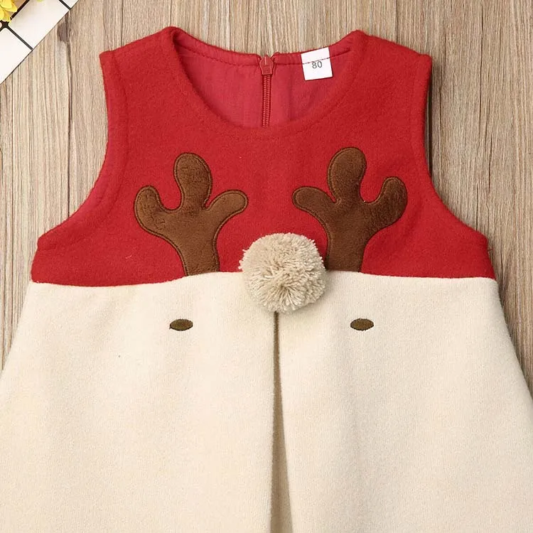 Fashion Boutique Autumn Red Elk Christmas Little Kids Baby Winter Clothes Girls Dress