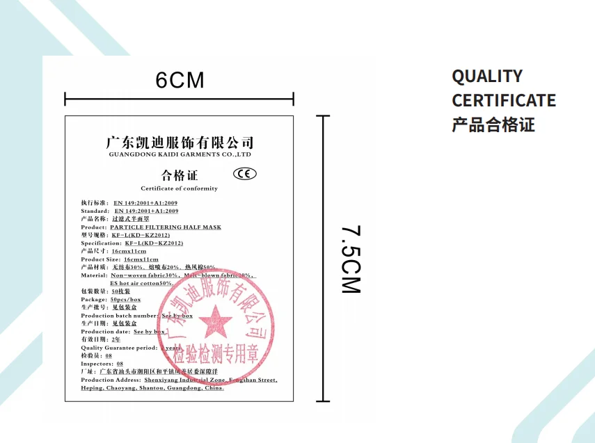Display: Mask standard \ Size \Material \Quantity\ Production Date \ Production Address, etc.