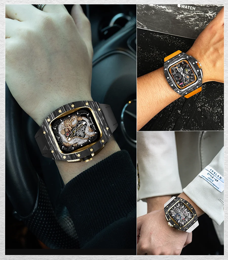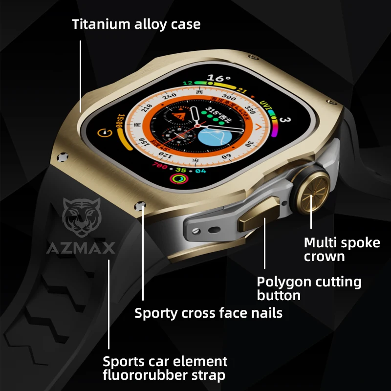 For Apple Watch 49mm Carbon Fiber Modification Kit Fluoro rubber Band Luxury Cover Set For iWatch ultra 49MM Apple Watch Case