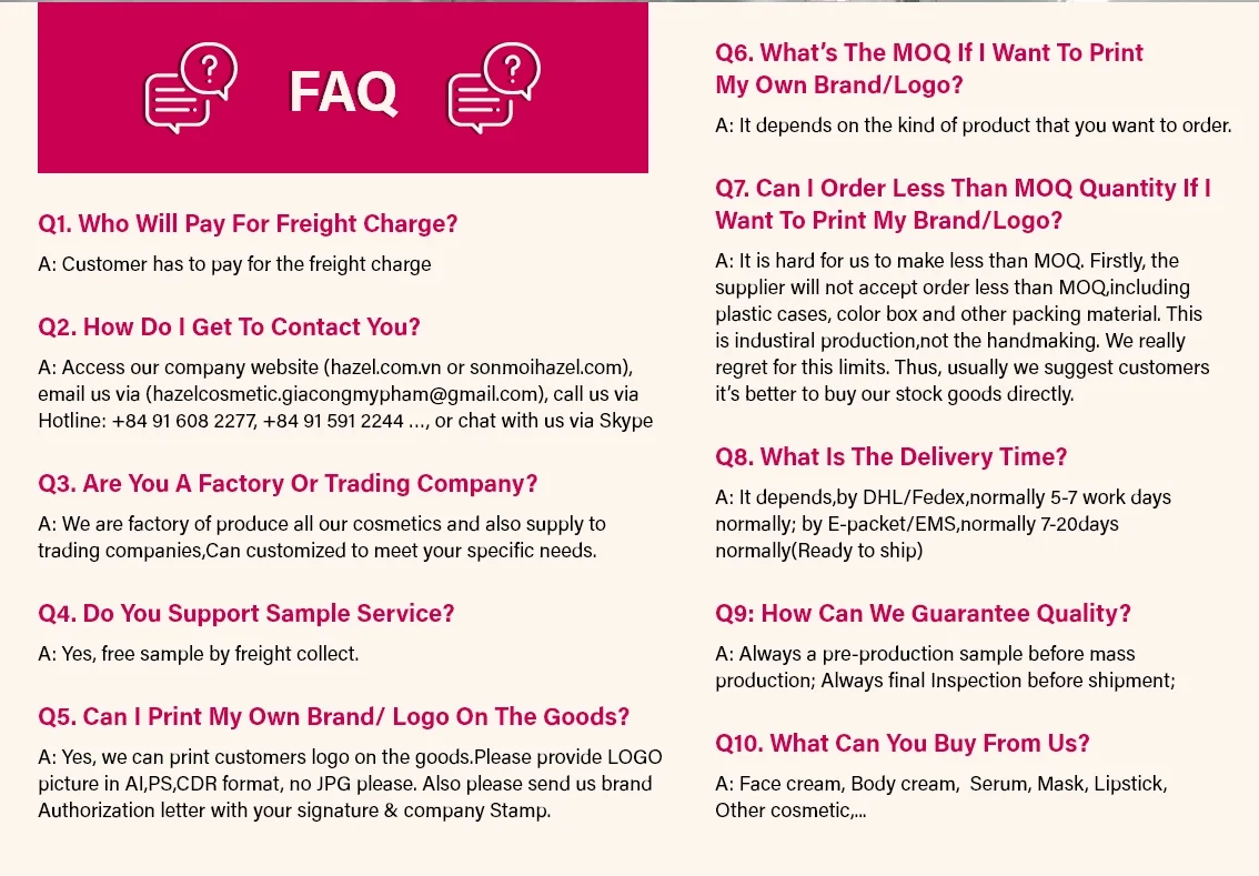 Service | - We have our own factory and R&D department. - Accept OEM ODM ,customize your own product - Strict production control ,all OEM product meet the quality standards - Provide warm & friendly before-sale service & after-sale service. - All requirements will be replied within 24 hours. - Provide free sample , you only pay the shipping freight . |