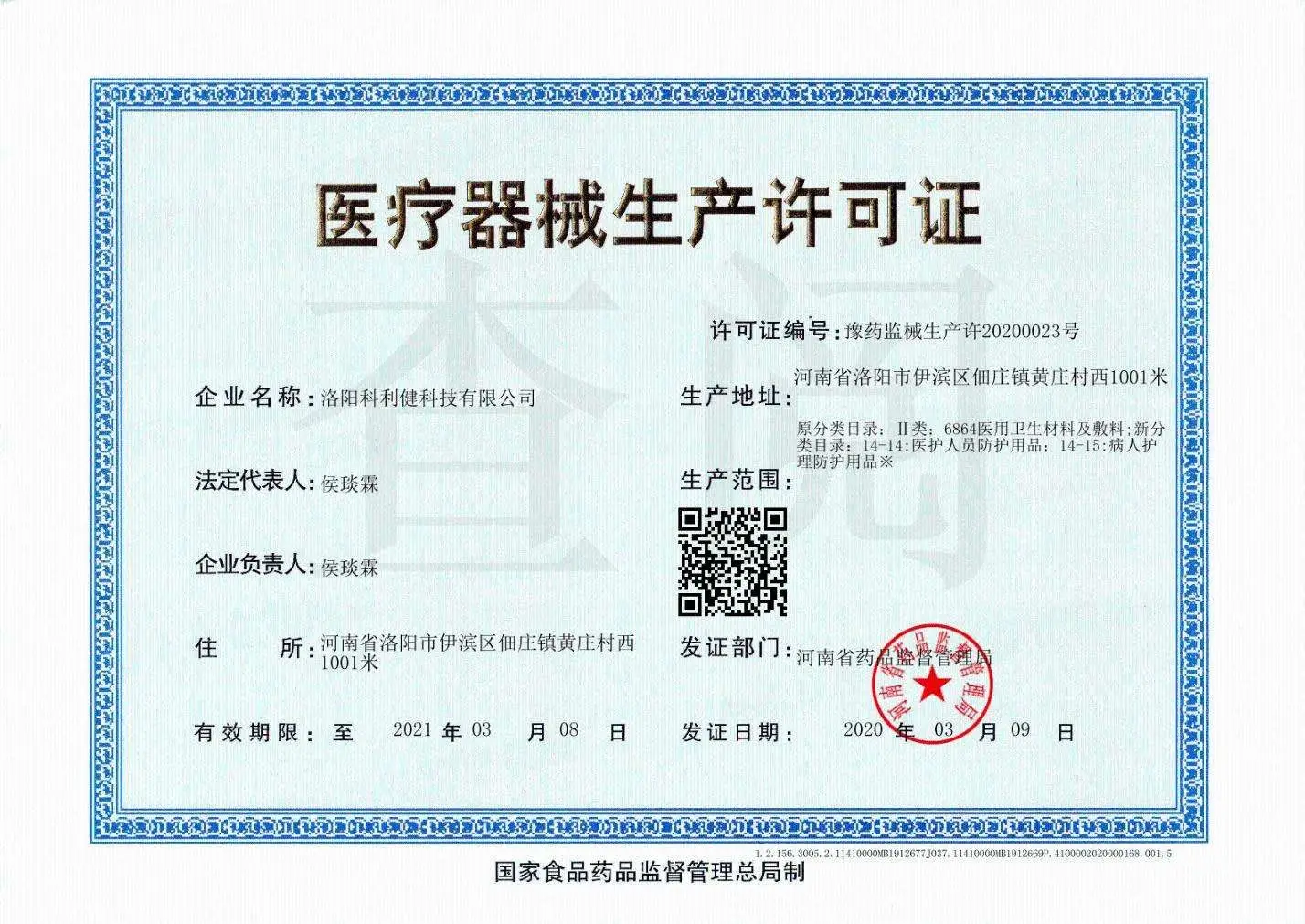 Luoyang Kelijian Technology Co. LTD is located Henan China, which is the national medical consumable base, taking the market sales volume above 50%. Backed 100,000-level purification standard workshop, we have 2 production lines for KN95, 4 production lines for disposable medical mask and 6 other lines, reaching the daily capacity 800,000pcs.