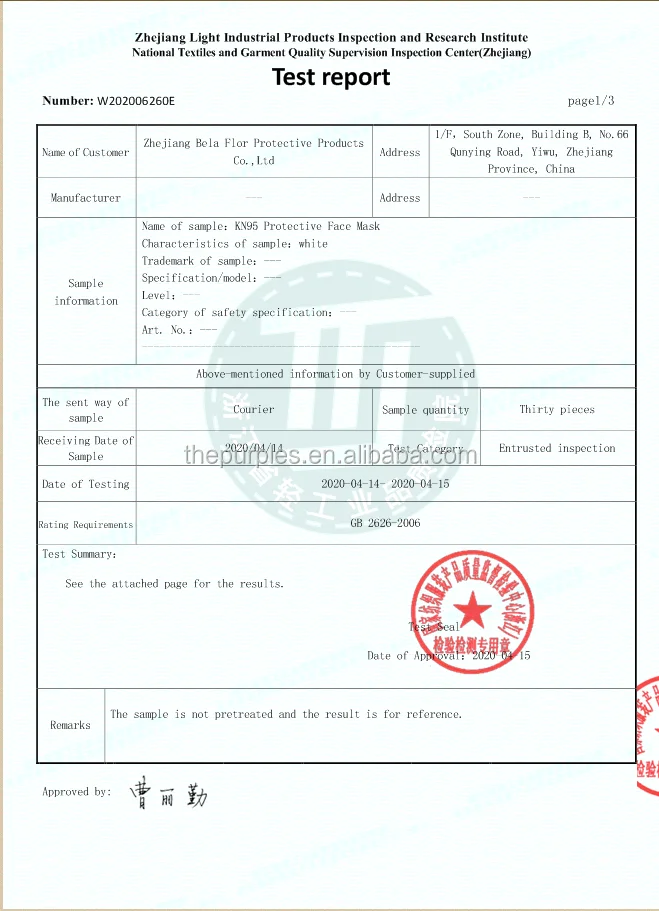 ZHEJIANG THE PURPLE’S PROTECTIVE PRODUCTS CO., LTD is a factory specializing in the production of high-quality masks, with the registered capital of 100 million RMB. It has successfully obtained the Medical Whitelist of the Ministry of Commerce (a medical material production enterprise that has obtained foreign standard certification or registration) and non-medical whitelist (non-medical mask manufacturing enterprises that have obtained foreign standard certification or registration).