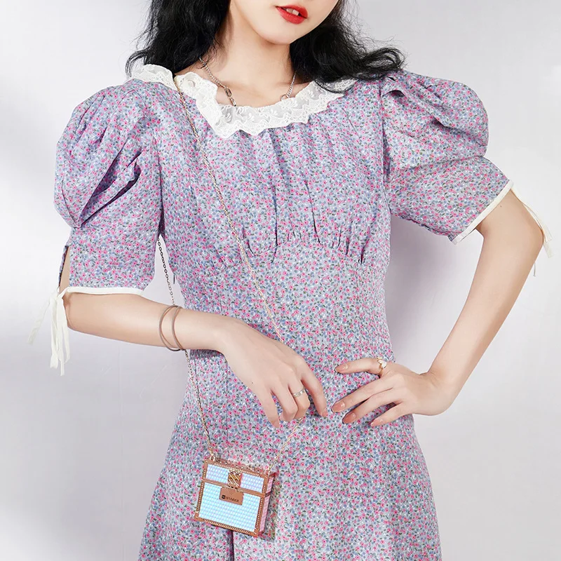 Fashion Wholesale French Gentle Floral Puff Sleeve Ladies Dress For Women Clothing Elegant Custom Logo Maxi Casual Dresses Women