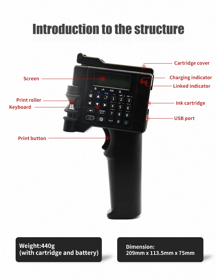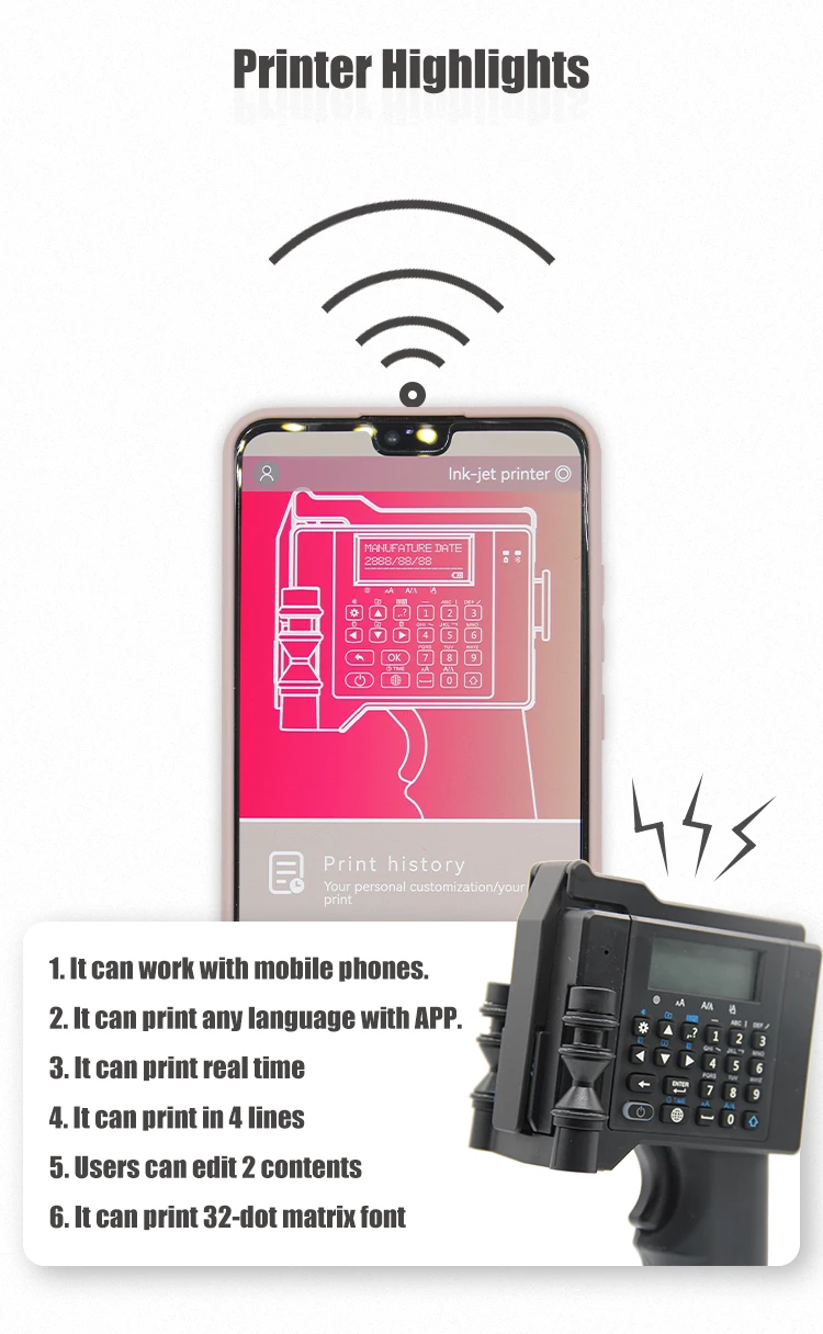What it can print | Any language, barcode, QR code, Logo in single color, date, etc. |