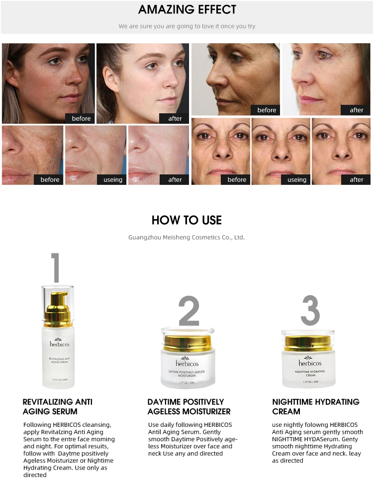 Produce Name: Herbicos Hot Sale   Luxury Face Anti Aging Skin Care Set for Women Skincare Wholesale 3 Set