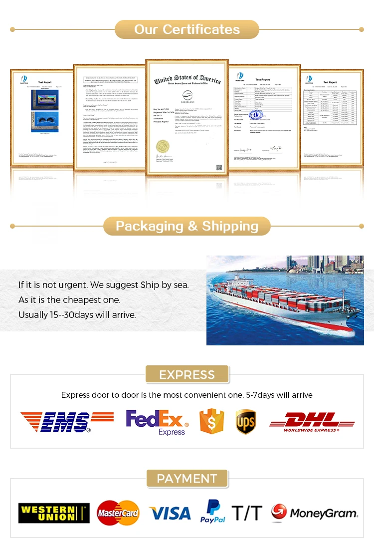 4.How do you ship the goods and how long does it take to arrive? A:We usually ship by DHL, UPS, FedEx or TNT. It usually takes 2-6 workdays to arrive. Airline and sea shipping also optional.