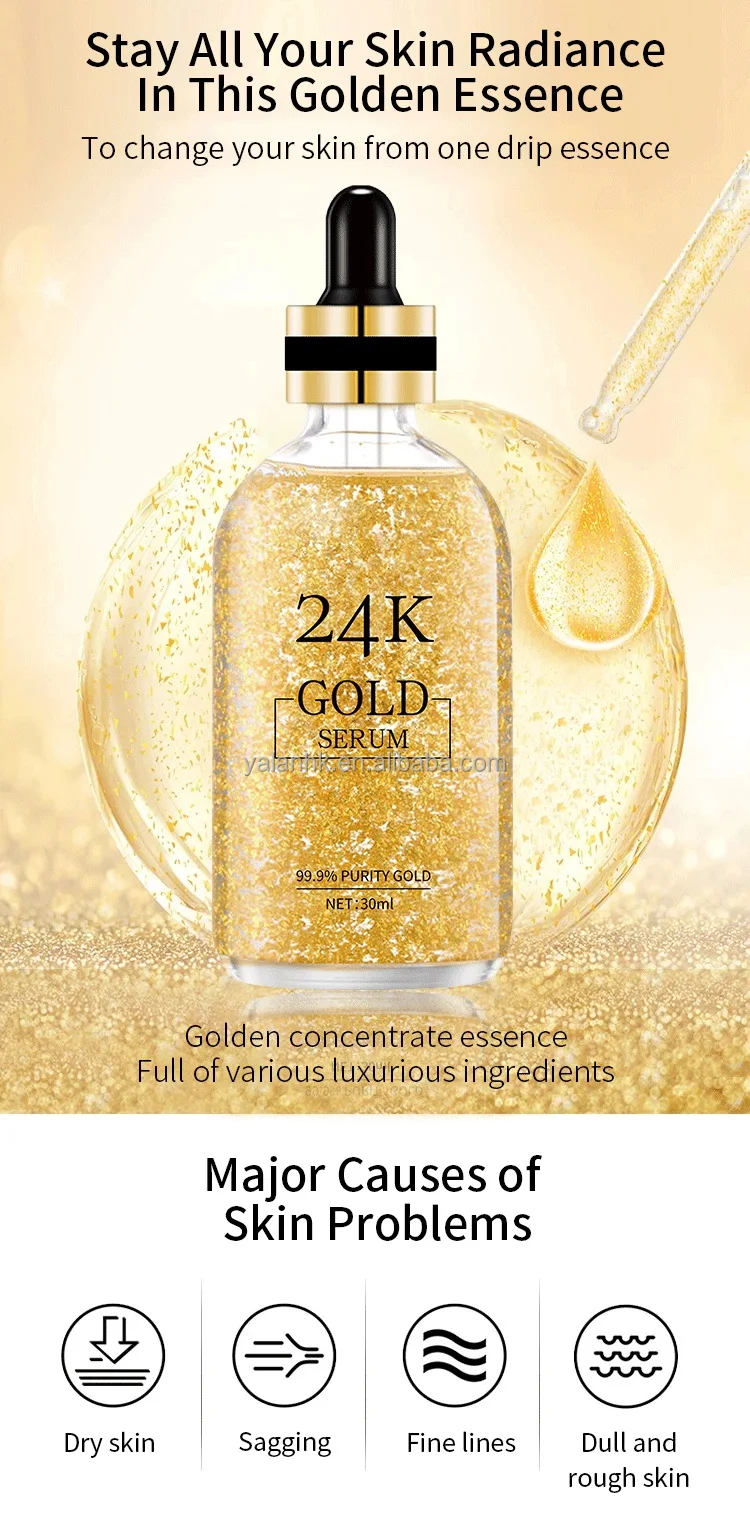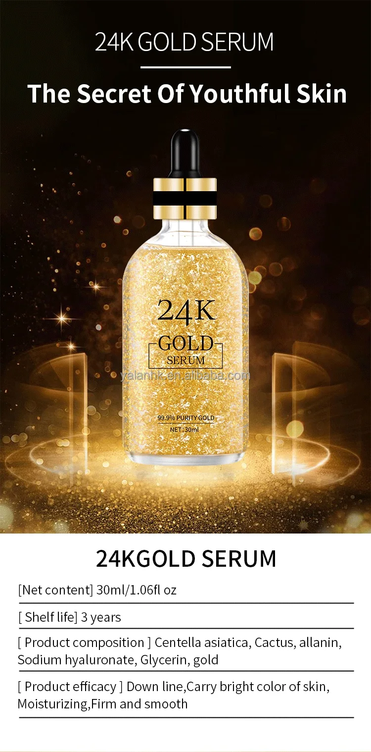 High Quality Face Skin Repair Tender Moisture Whiten Skin Tone Essence Anti Wrinkles 24k Pure Gold Serum