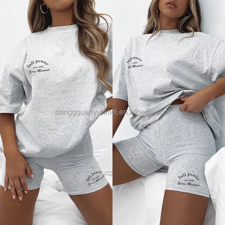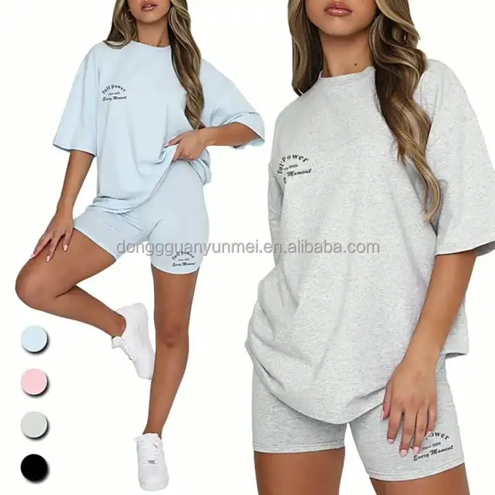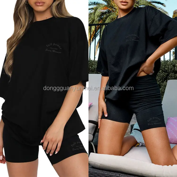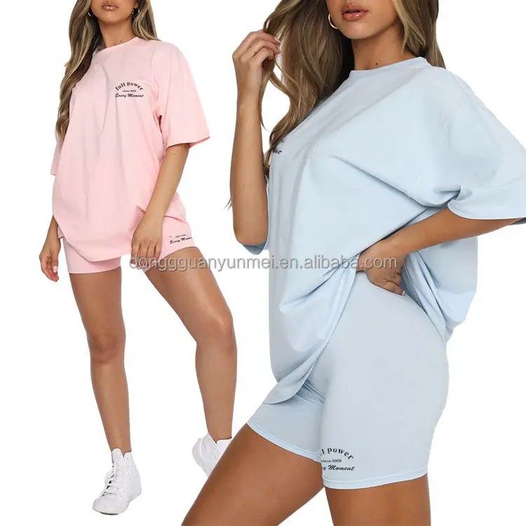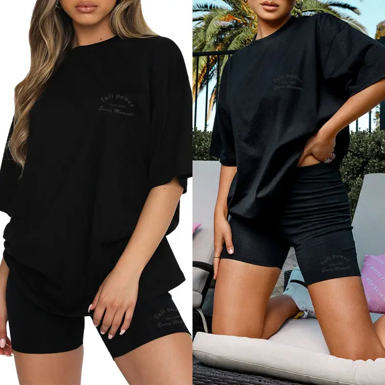 High Quality Tshirt and Short Set Custom Logo summer Ladies T-shirt 2 Pc Biker Shorts Sets Oversized Women Two Piece Shorts Set |
