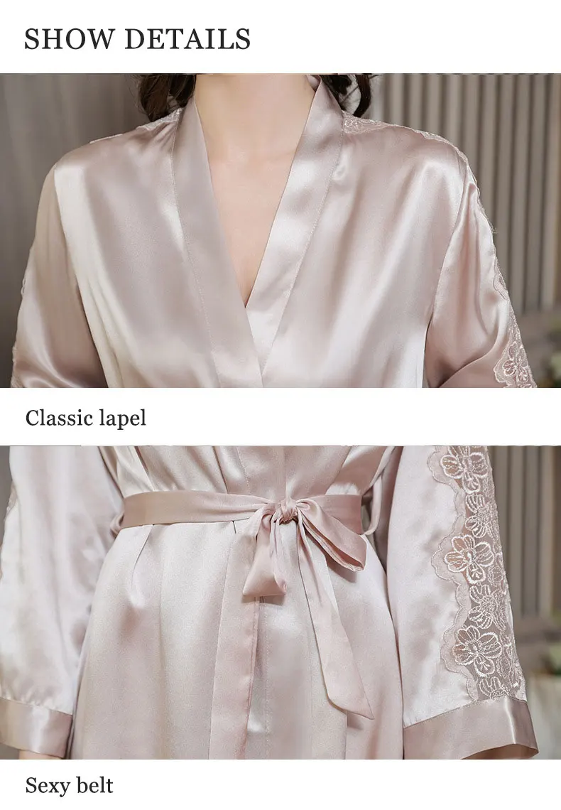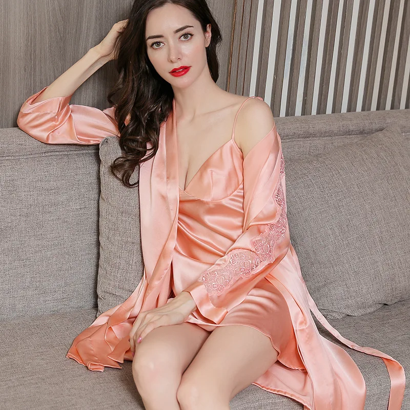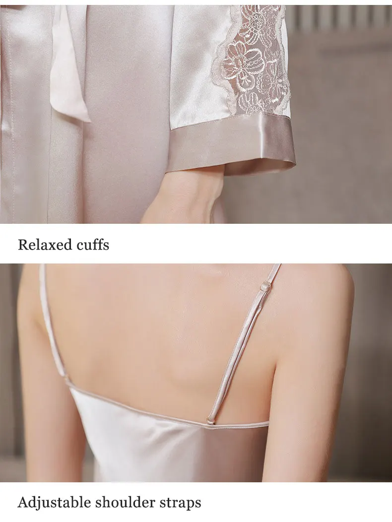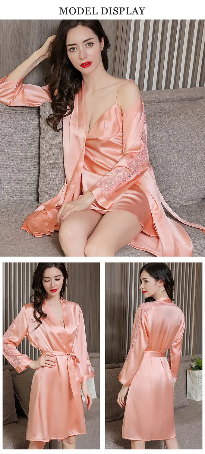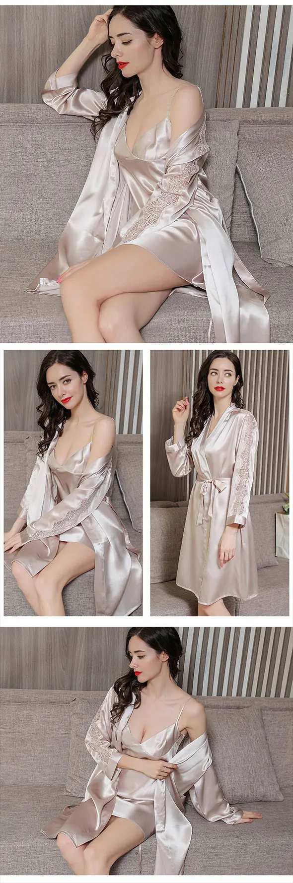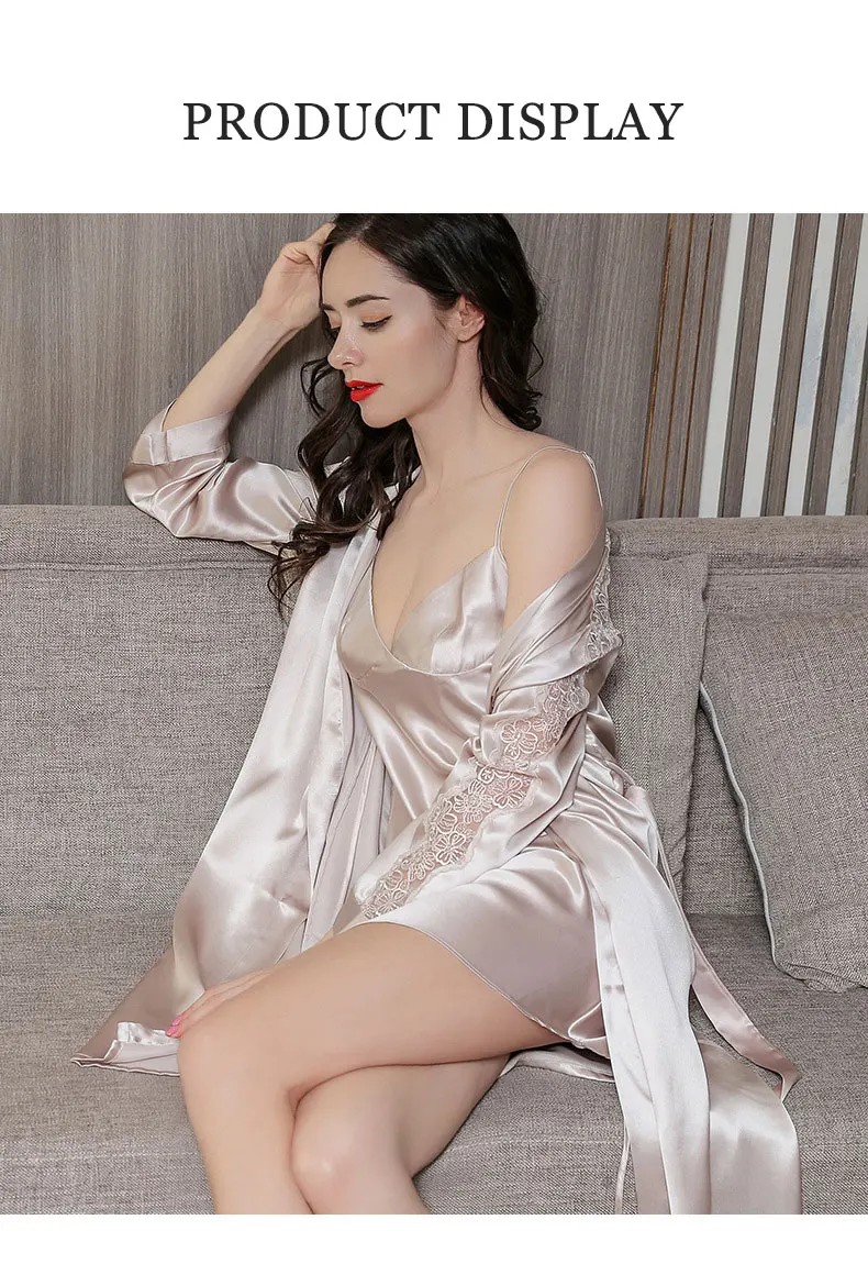Ice Silk Pajamas Women's Lace Suspender Nightdress Two-piece Set Comfortable Nightgown Set |