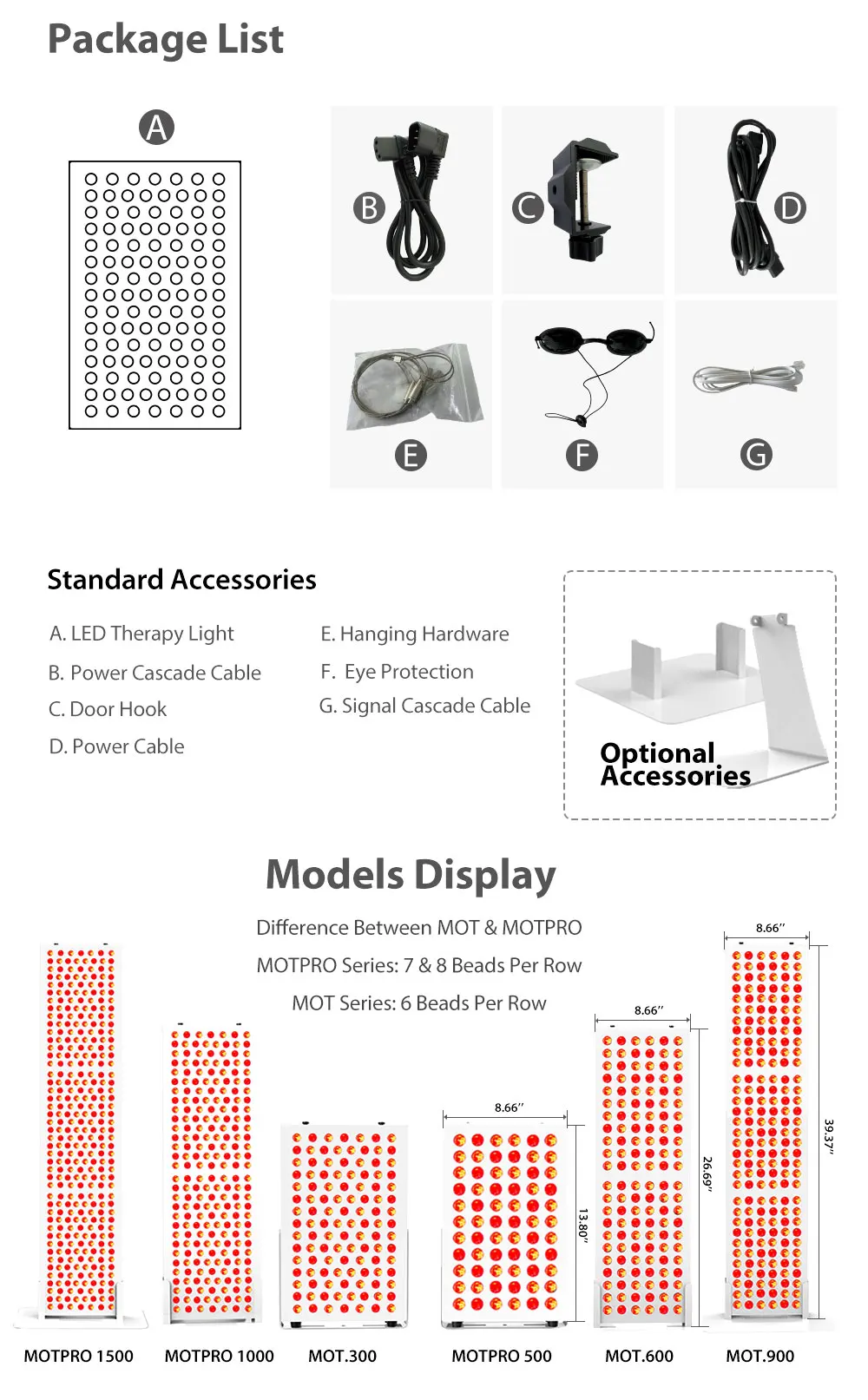 MOT.&MOTPRO. Series Red Therapy Light is designed to deliver stable red light and near-infrared light therapy with precise optical control to improve the health such as enhanced muscle recovery, pain relief and wound healing quickly. The unit is engineered to be well-built with a clean and simple design. It features a unique pulse output technology to deliver light therapy exactly at the well-setting pulse frequecy in a stable state, which make sure of the maxium effects of the pulse light function.