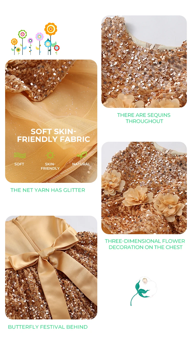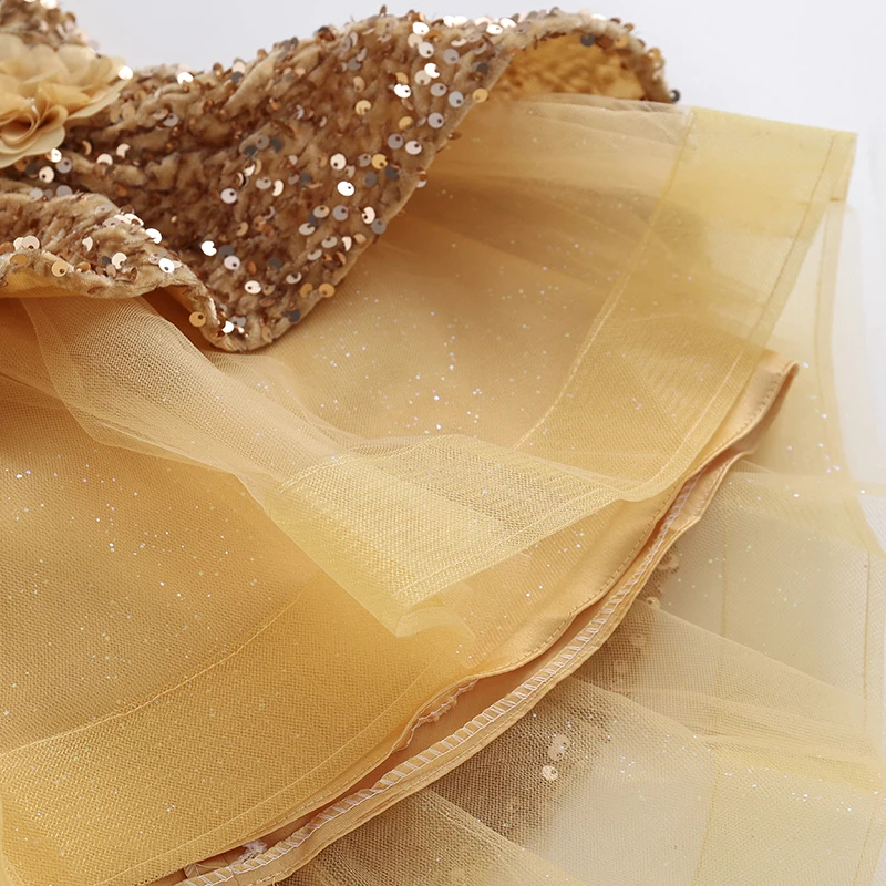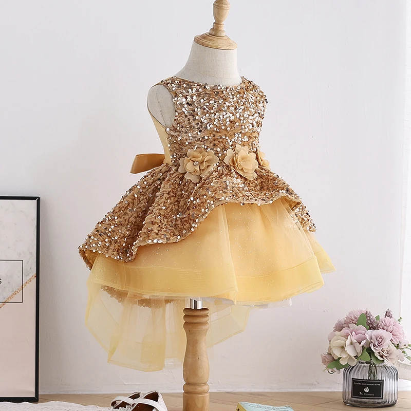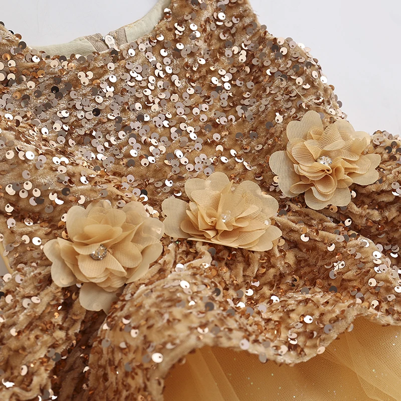 Type | Gold sequin fancy prom dress party birthday gown baby girl's dresses |