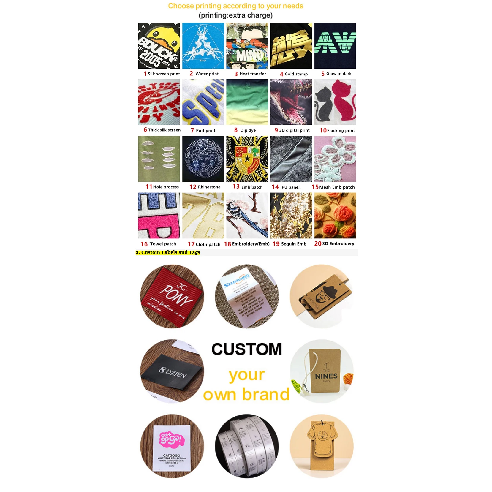 Customized logo: | 1. Extra 50-100USD for customize tag/label, which will make about 300 pcs tags 2. Extra 0.5USD/pcs for changing tag/label (if you order less 200 pcs each style) 3. Print logo fee is extra 2.5USD each logo. If you order more than 30 pcs, then print logo fee is 1.3USD each logo. If you order more than 200 pcs each style, the print logo fee will be lower |