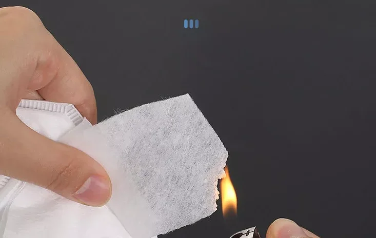 Combustion test, flame retardant non-woven in the case of fire does not burn, no smoke