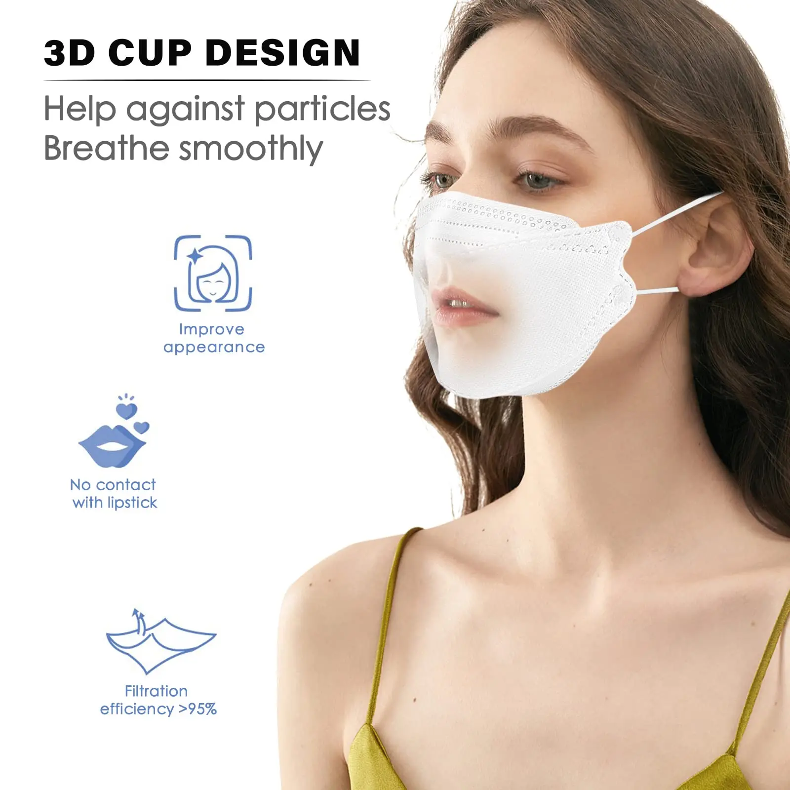 KN95 MASK filters at least 95% of PM2.5 airborne particles through its 4-layered filtration system.