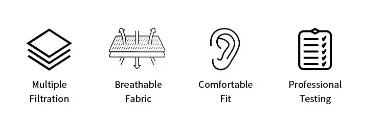 4-layered, highly effective filter for protection from air pollution and fine dust.