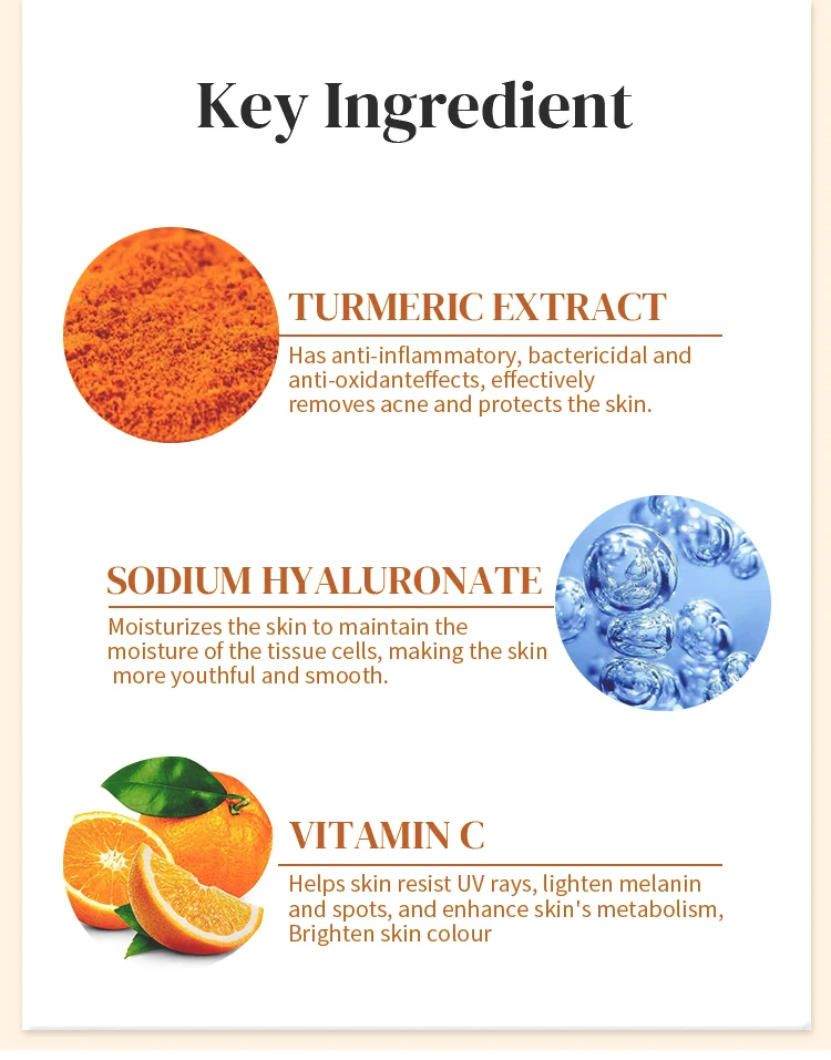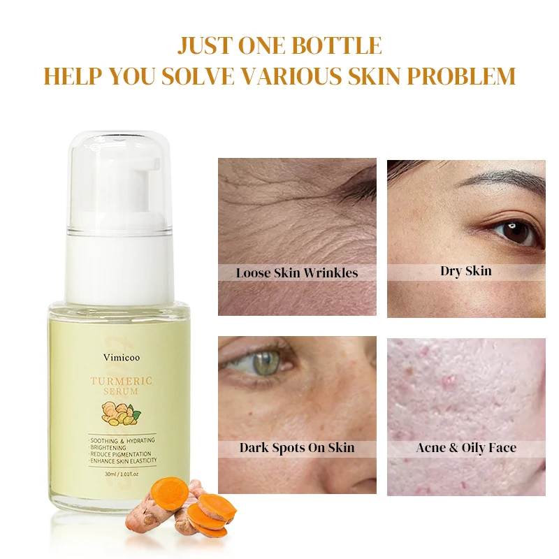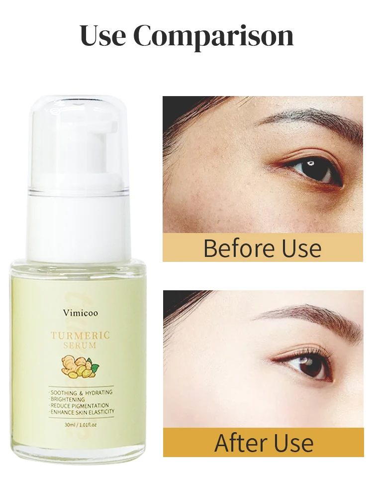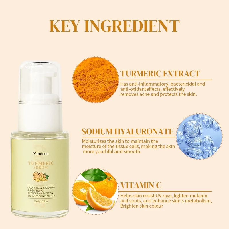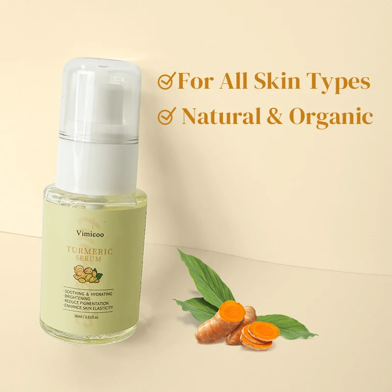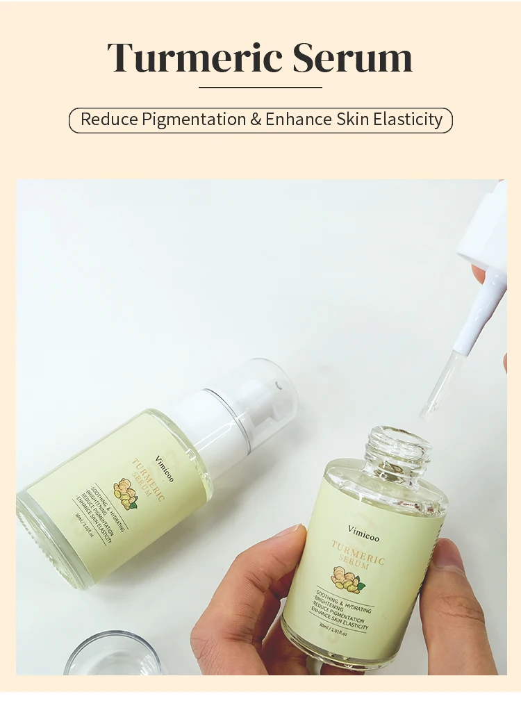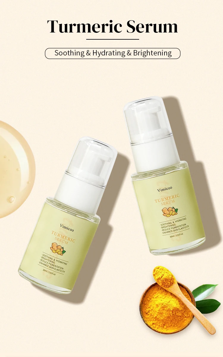 Product Name: | Vimicoo Low MOQ Private Label Beauty Organic Herbal Facial Skin Care Lightening Soothing Whitening Tumeric Turmeric Face Serum |