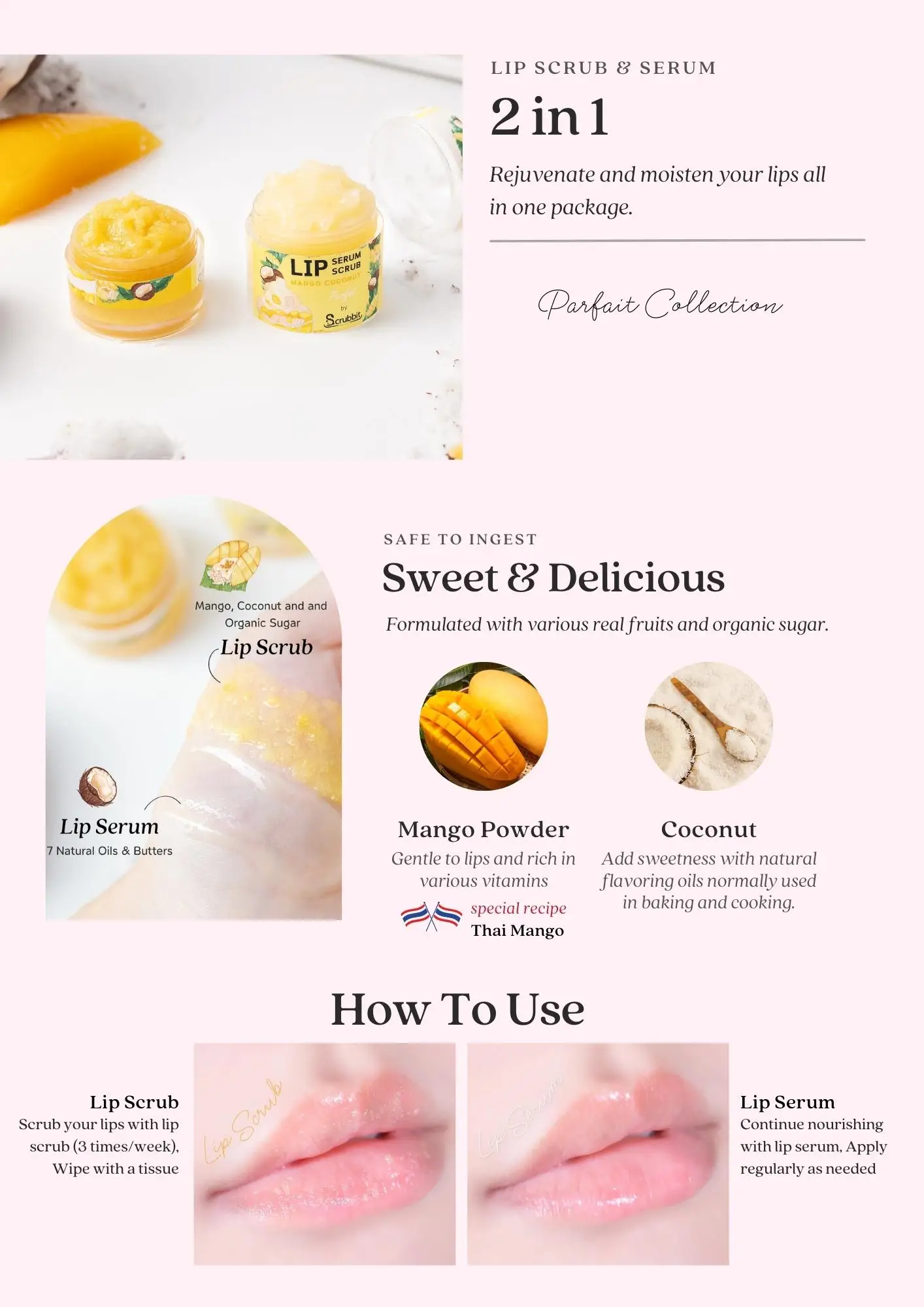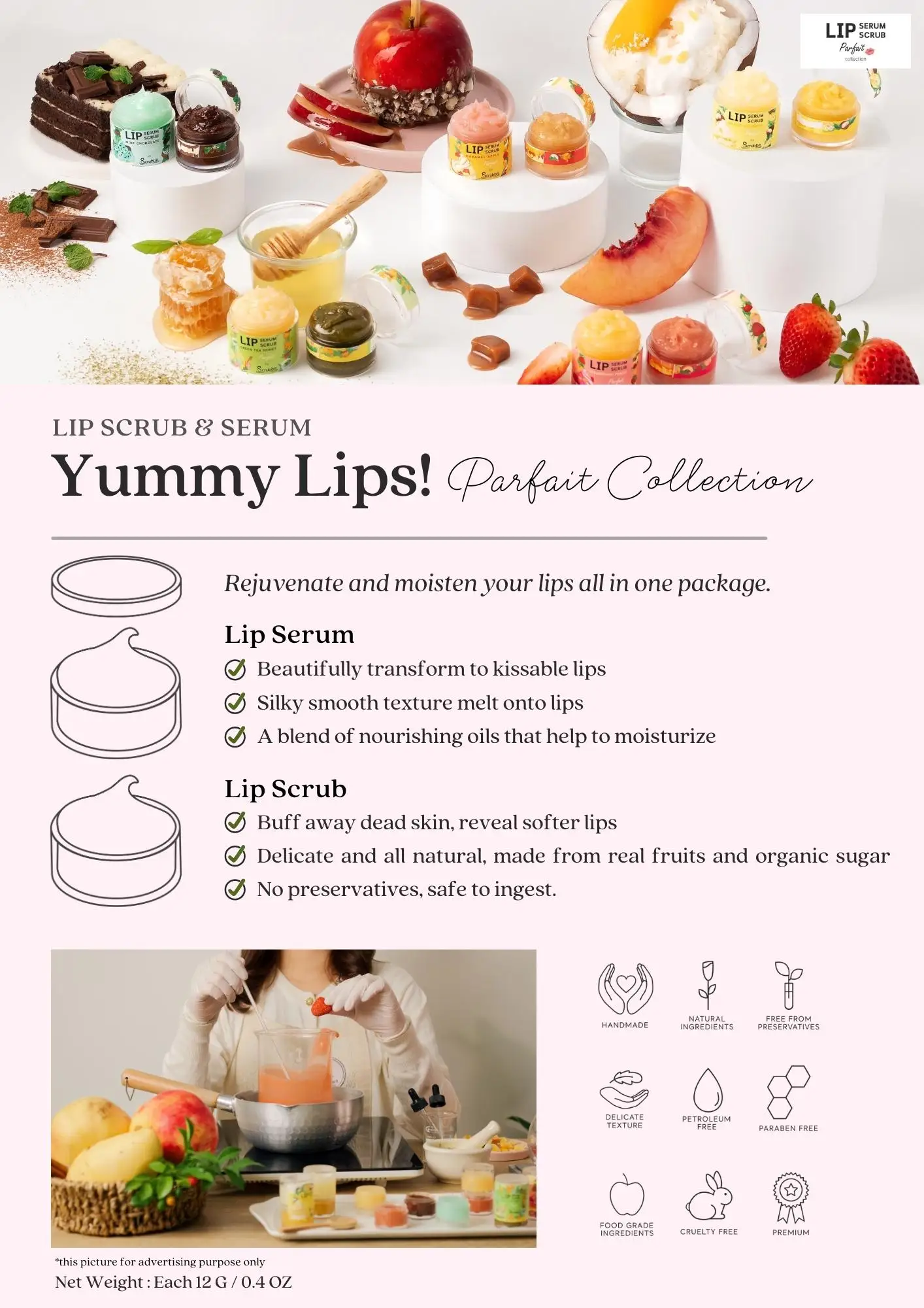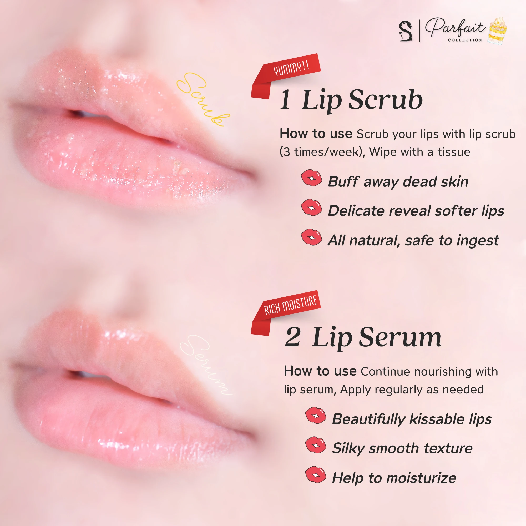 More Feature | Yummy Lips! 2 in 1 : Lip Scrub & Serum, |