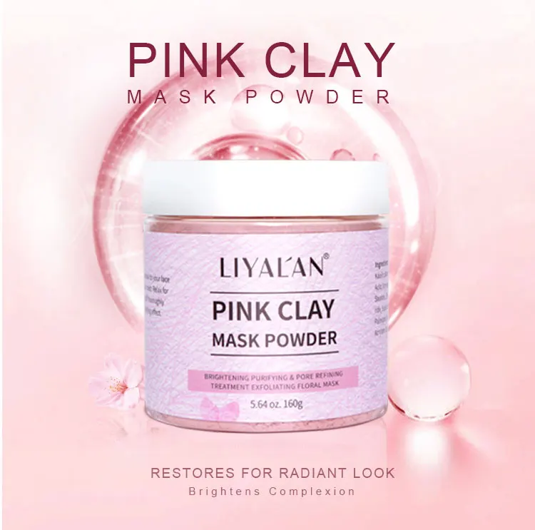 LIYALAN Natural Extract Whitening Organic Pink Clay Powder Mask