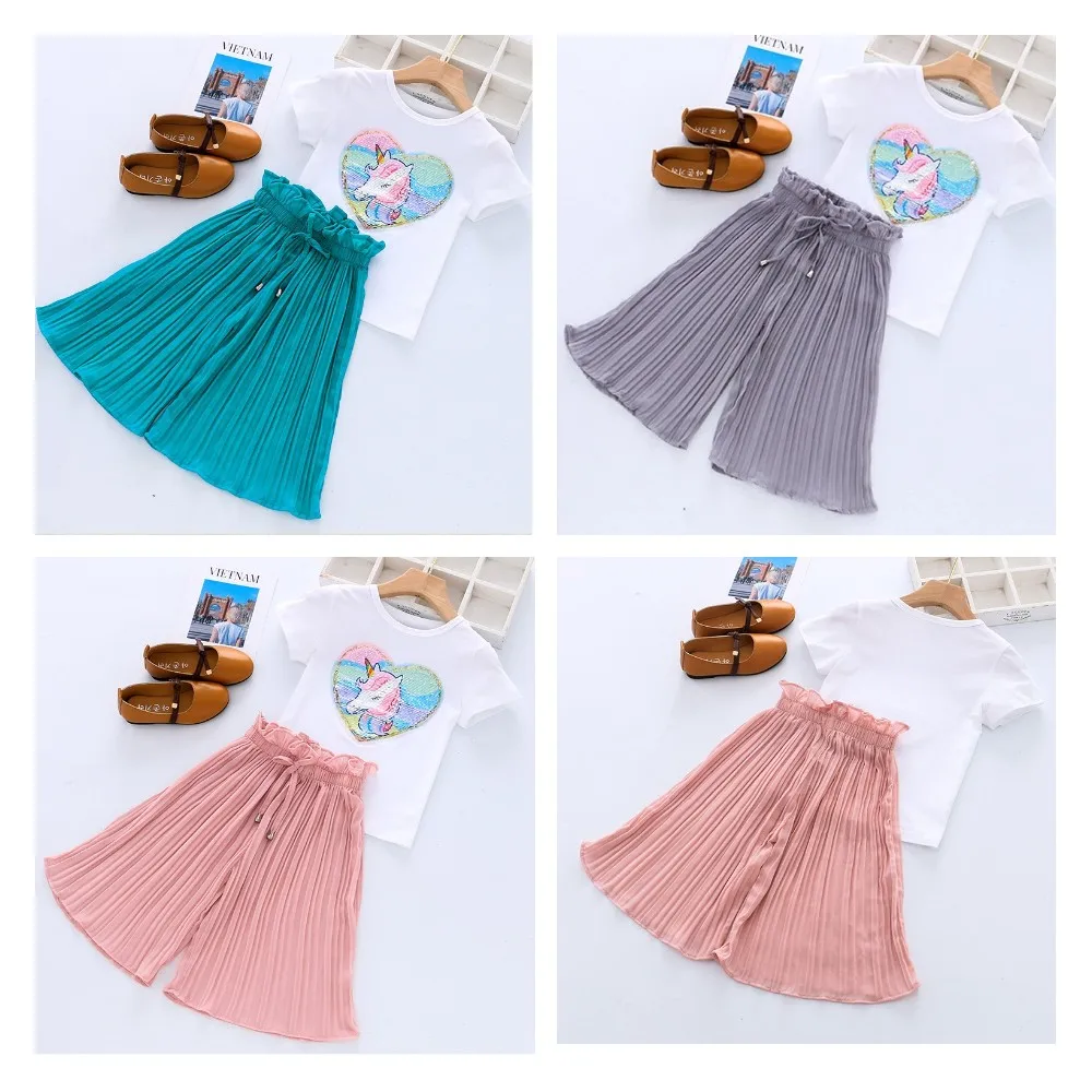 LZH Summer Girls Clothes Unicorn T-shirt+Shorts 2pcs Kids Clothing Set For Girl Sport Suit Children Clothing